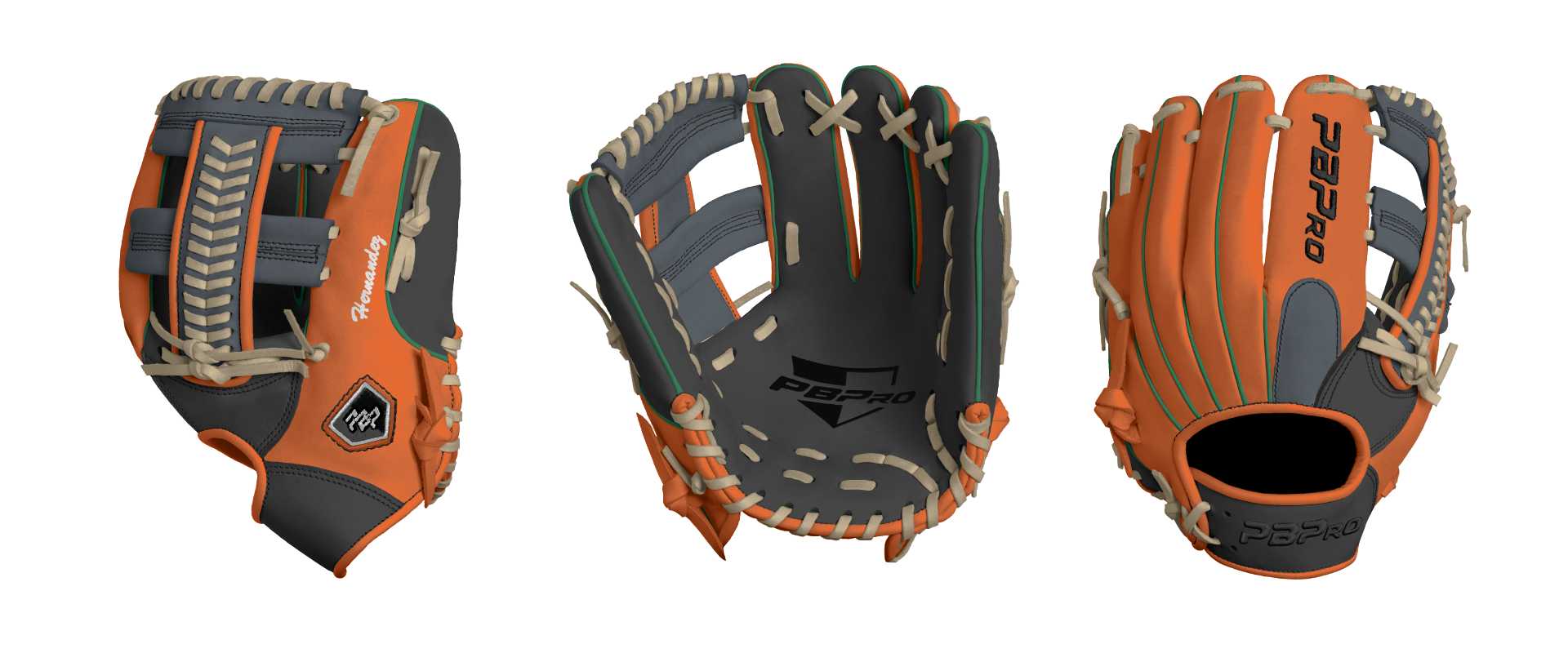 Category: PBPro Custom Product: Baseball Series: Travel Pro Series | USD 149.00 Glove Type: Fielders Size: 11.75" Finger Pad: With Finger Pad Web: X-Laced Single Post Web Palm: Palm (Color: Black) Back Shell Main: Back Shell Main (Color: Orange) Back Shell Accent: Back Shell Accent (Color: Black) Web: Web (Color: Steel Gray) Finger Pad: Finger Pad (Color: Steel Gray) Welting: Welting (Color: Green) Binding: Binding (Color: Orange) Lace: Lace (Color: Cream) Logo and Label: Logo and Label (Color: Black) Stitch: Stitch (Color: Black) Embroidery: Embroidery (Color: Black) Hand Throw: Right Hand Thrower Lace Length: Normal Name: Hernandez (Font Style: Brush Script MT, Font Color: White, Patch Color: N/A) Flag (Ring Finger): N/A Remarks: N/A