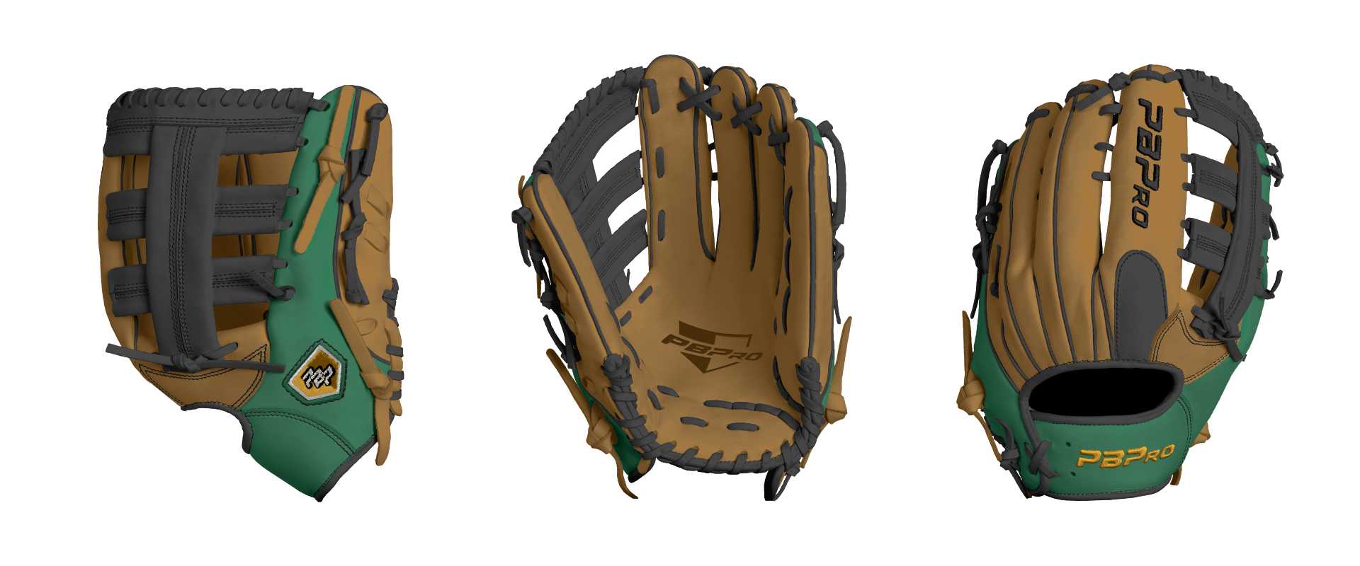 Category: PBPro Custom Product: Baseball Series: Travel Pro Series | USD 149.00 Glove Type: Fielders Size: 12.5" Finger Pad: With Finger Pad Web: Double Bar Web Palm: Palm (Color: Tan) Back Shell Main: Back Shell Main (Color: Tan) Back Shell Accent: Back Shell Accent (Color: Green) Web: Web (Color: Black) Finger Pad: Finger Pad (Color: Black) Welting: Welting (Color: Black) Binding: Binding (Color: Black) Lace: Lace (Color: Black) Logo and Label: Logo and Label (Color: G.Yellow) Stitch: Stitch (Color: Black) Embroidery: Embroidery (Color: Black) Hand Throw: Right Hand Thrower Lace Length: Normal Flag (Ring Finger): N/A Remarks: N/A