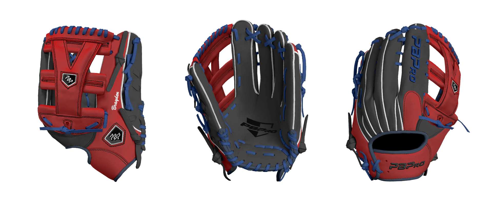 Category: PBPro Custom Product: Baseball Series: Travel Pro Series | USD 149.00 Glove Type: Fielders Size: 12.5" Finger Pad: With Finger Pad Web: Y web Palm: Palm (Color: Black) Back Shell Main: Back Shell Main (Color: Black) Back Shell Accent: Back Shell Accent (Color: Red) Web: Web (Color: Red) Finger Pad: Finger Pad (Color: Red) Welting: Welting (Color: White) Binding: Binding (Color: Navy) Lace: Lace (Color: Royal) Logo and Label: Logo and Label (Color: Black) Stitch: Stitch (Color: Black) Embroidery: Embroidery (Color: Royal) Hand Throw: Right Hand Thrower Lace Length: Normal Name: Brayden (Font Style: Brush Script MT, Font Color: White, Patch Color: N/A) Flag (Ring Finger): N/A Remarks: N/A