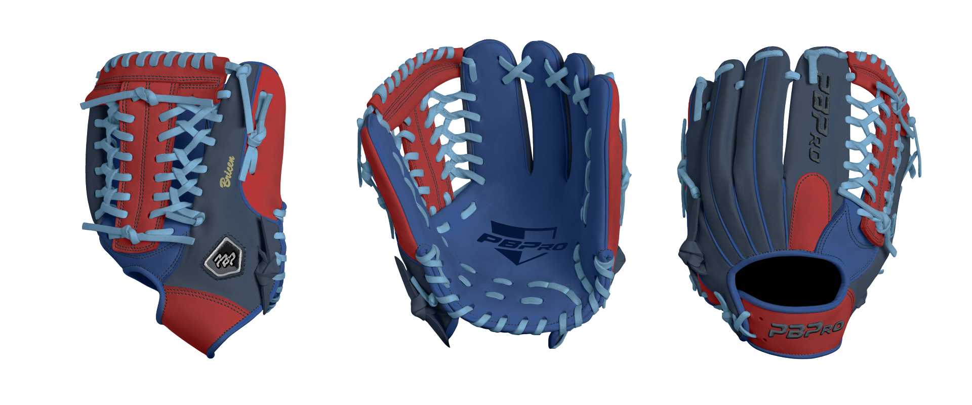 Category: PBPro Custom Product: Baseball Series: Travel Pro Series | USD 149.00 Glove Type: Fielders Size: 11.25" Finger Pad: With Finger Pad Web: Modified Trap Web Palm: Palm (Color: Royal) Back Shell Main: Back Shell Main (Color: Navy) Back Shell Accent: Back Shell Accent (Color: Red) Web: Web (Color: Red) Finger Pad: Finger Pad (Color: Red) Welting: Welting (Color: Royal) Binding: Binding (Color: Royal) Lace: Lace (Color: Columbia Blue) Logo and Label: Logo and Label (Color: Steel Gray) Stitch: Stitch (Color: Steel Gray) Embroidery: Embroidery (Color: Steel Gray) Hand Throw: Right Hand Thrower Lace Length: Normal Name: Bricen (Font Style: Brush Script MT, Font Color: Vegas Gold, Patch Color: N/A) Flag (Ring Finger): United States Remarks: N/A