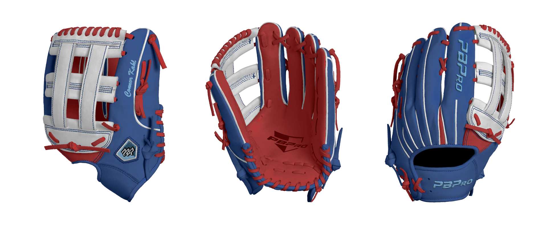 Category: PBPro Custom Product: Baseball Series: Travel Pro Series | USD 149.00 Glove Type: Fielders Size: 12.75" Finger Pad: Without Finger Pad Web: Pro H Web Palm: Palm (Color: Red) Back Shell Main: Back Shell Main (Color: Royal) Back Shell Accent: Back Shell Accent (Color: Royal) Web: Web (Color: White) Welting: Welting (Color: White) Binding: Binding (Color: Royal) Lace: Lace (Color: Red) Logo and Label: Logo and Label (Color: Columbia Blue) Stitch: Stitch (Color: Royal) Embroidery: Embroidery (Color: Columbia Blue) Hand Throw: Right Hand Thrower Lace Length: Normal Name: Connor Kahl (Font Style: Brush Script MT, Font Color: Columbia Blue, Patch Color: N/A) Flag (Ring Finger): United States Remarks: Put #28 somewhere on the glove