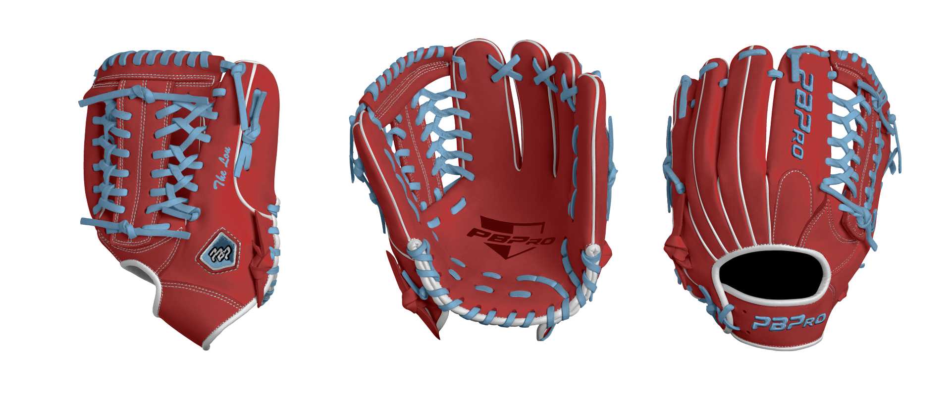 Category: PBPro Custom Product: Baseball Series: Travel Pro Series | USD 149.00 Glove Type: Fielders Size: 11.5" Finger Pad: With Finger Pad Web: Modified Trap Web Palm: Palm (Color: Red) Back Shell Main: Back Shell Main (Color: Red) Back Shell Accent: Back Shell Accent (Color: Red) Web: Web (Color: Red) Finger Pad: Finger Pad (Color: Red) Welting: Welting (Color: White) Binding: Binding (Color: White) Lace: Lace (Color: Columbia Blue) Logo and Label: Logo and Label (Color: Columbia Blue) Stitch: Stitch (Color: White) Embroidery: Embroidery (Color: Columbia Blue) Hand Throw: Right Hand Thrower Lace Length: Normal Name: The Lou (Font Style: Brush Script MT, Font Color: Columbia Blue, Patch Color: N/A) Flag (Ring Finger): N/A Remarks: N/A