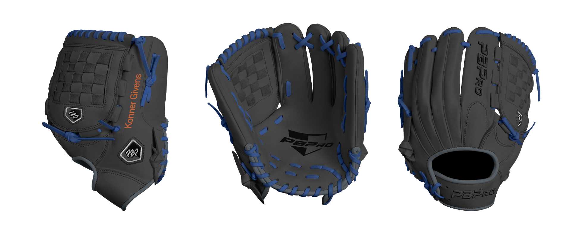 Category: PBPro Custom Product: Baseball Series: Travel Pro Series | USD 149.00 Glove Type: Fielders Size: 11.5" Finger Pad: With Finger Pad Web: Basket Web Palm: Palm (Color: Black) Back Shell Main: Back Shell Main (Color: Black) Back Shell Accent: Back Shell Accent (Color: Black) Web: Web (Color: Black) Finger Pad: Finger Pad (Color: Black) Welting: Welting (Color: Black) Binding: Binding (Color: Steel Gray) Lace: Lace (Color: Royal) Logo and Label: Logo and Label (Color: Black) Stitch: Stitch (Color: Black) Embroidery: Embroidery (Color: Black) Hand Throw: Right Hand Thrower Lace Length: Normal Name: Konner Givens (Font Style: Pontano Sans, Font Color: Orange, Patch Color: N/A) Flag (Ring Finger): United States Remarks: Country American