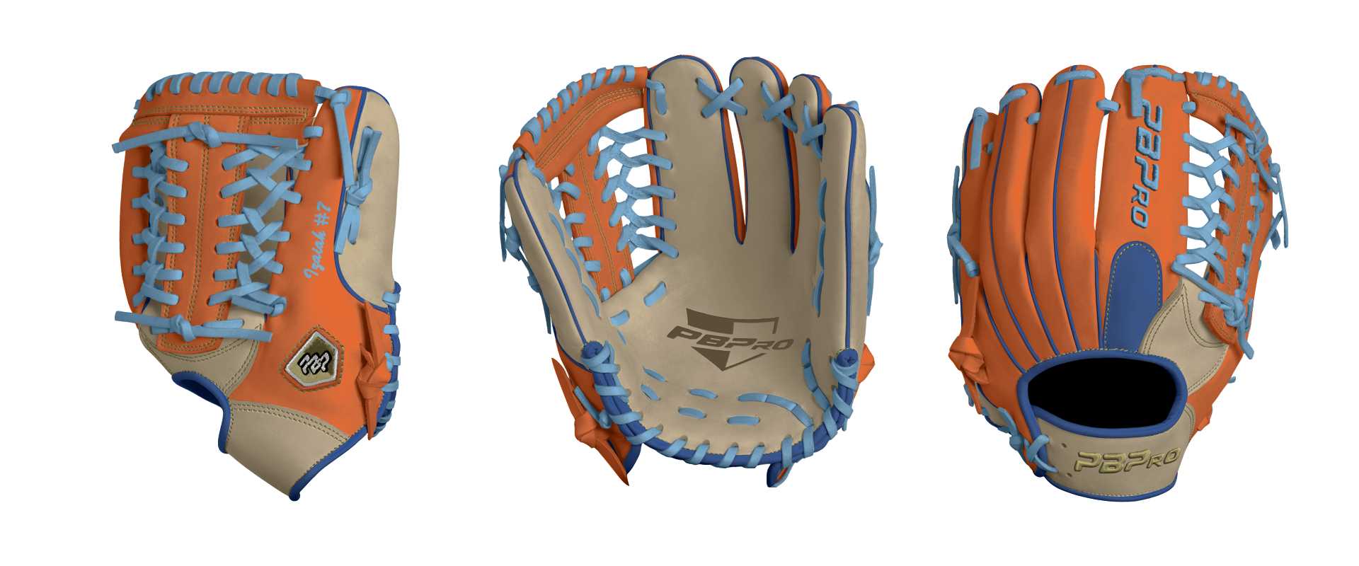 Category: PBPro Custom Product: Baseball Series: Travel Pro Series | USD 149.00 Glove Type: Fielders Size: 11.5" Finger Pad: With Finger Pad Web: Modified Trap Web Palm: Palm (Color: Cream) Back Shell Main: Back Shell Main (Color: Orange) Back Shell Accent: Back Shell Accent (Color: Cream) Web: Web (Color: Orange) Finger Pad: Finger Pad (Color: Royal) Welting: Welting (Color: Royal) Binding: Binding (Color: Royal) Lace: Lace (Color: Columbia Blue) Logo and Label: Logo and Label (Color: Vegas Gold) Stitch: Stitch (Color: Vegas Gold) Embroidery: Embroidery (Color: Columbia Blue) Hand Throw: Right Hand Thrower Lace Length: Normal Name: Izaiah #7 (Font Style: Brush Script MT, Font Color: Columbia Blue, Patch Color: N/A) Flag (Ring Finger): United States Remarks: N/A