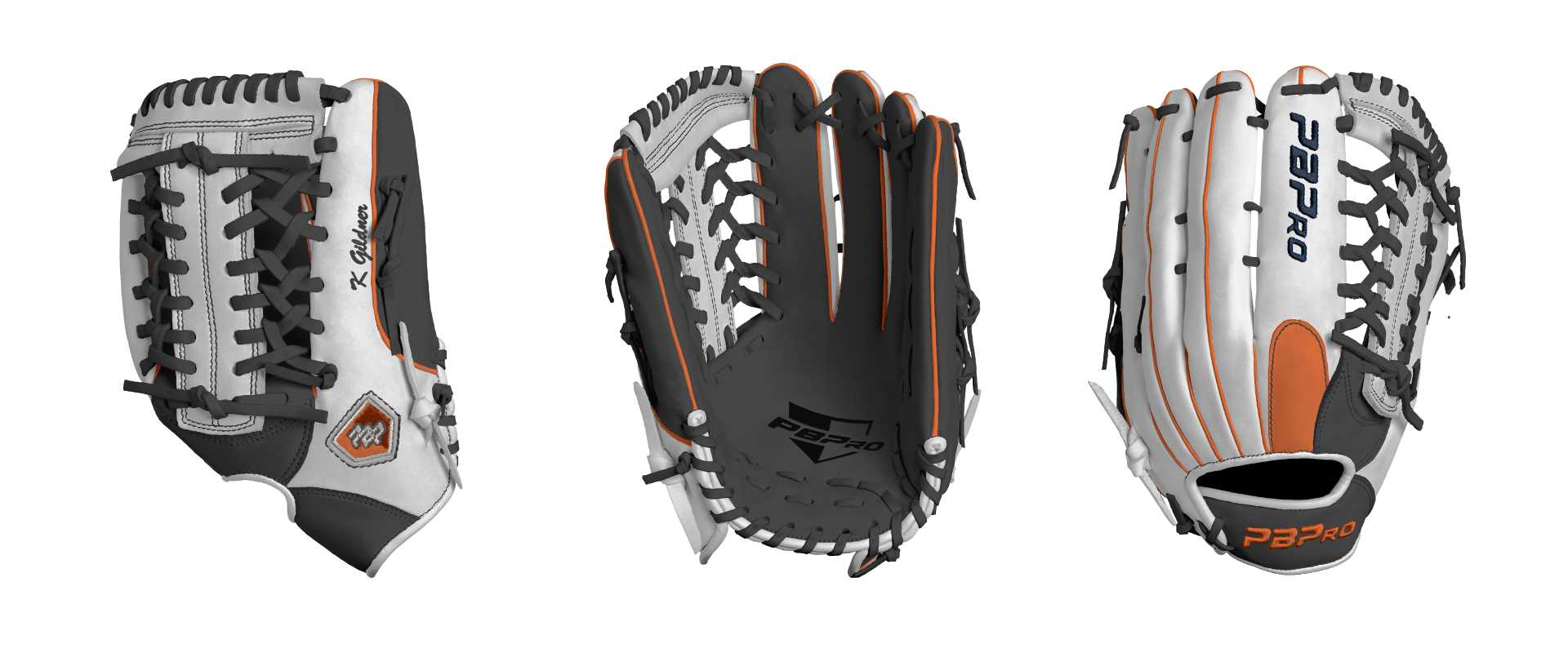 Category: PBPro Custom Product: Baseball Series: Travel Pro Series | USD 149.00 Glove Type: Fielders Size: 13" Finger Pad: With Finger Pad Web: Modified Trap Web Palm: Palm (Color: Black) Back Shell Main: Back Shell Main (Color: White) Back Shell Accent: Back Shell Accent (Color: Black) Web: Web (Color: White) Finger Pad: Finger Pad (Color: Orange) Welting: Welting (Color: Orange) Binding: Binding (Color: White) Lace: Lace (Color: Black) Logo and Label: Logo and Label (Color: Orange) Stitch: Stitch (Color: Steel Gray) Embroidery: Embroidery (Color: Navy) Hand Throw: Right Hand Thrower Lace Length: Long (will not show in customizer) Name: K Gildner (Font Style: Brush Script MT, Font Color: Black, Patch Color: N/A) Flag (Ring Finger): N/A Remarks: N/A