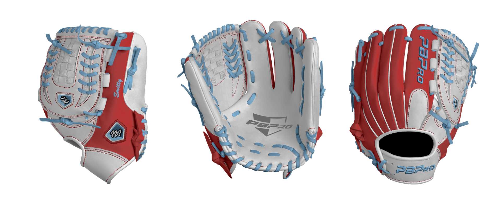 Category: PBPro Custom Product: Baseball Series: Travel Pro Series | USD 149.00 Glove Type: Fielders Size: 12" Finger Pad: With Finger Pad Web: Grid and Net Web Palm: Palm (Color: White) Back Shell Main: Back Shell Main (Color: Red) Back Shell Accent: Back Shell Accent (Color: White) Web: Web (Color: White) Finger Pad: Finger Pad (Color: White) Welting: Welting (Color: White) Binding: Binding (Color: White) Lace: Lace (Color: Columbia Blue) Logo and Label: Logo and Label (Color: Columbia Blue) Stitch: Stitch (Color: Red) Embroidery: Embroidery (Color: Columbia Blue) Hand Throw: Right Hand Thrower Lace Length: Normal Name: Smitty (Font Style: Brush Script MT, Font Color: Columbia Blue, Patch Color: N/A) Flag (Ring Finger): United States Remarks: N/A
