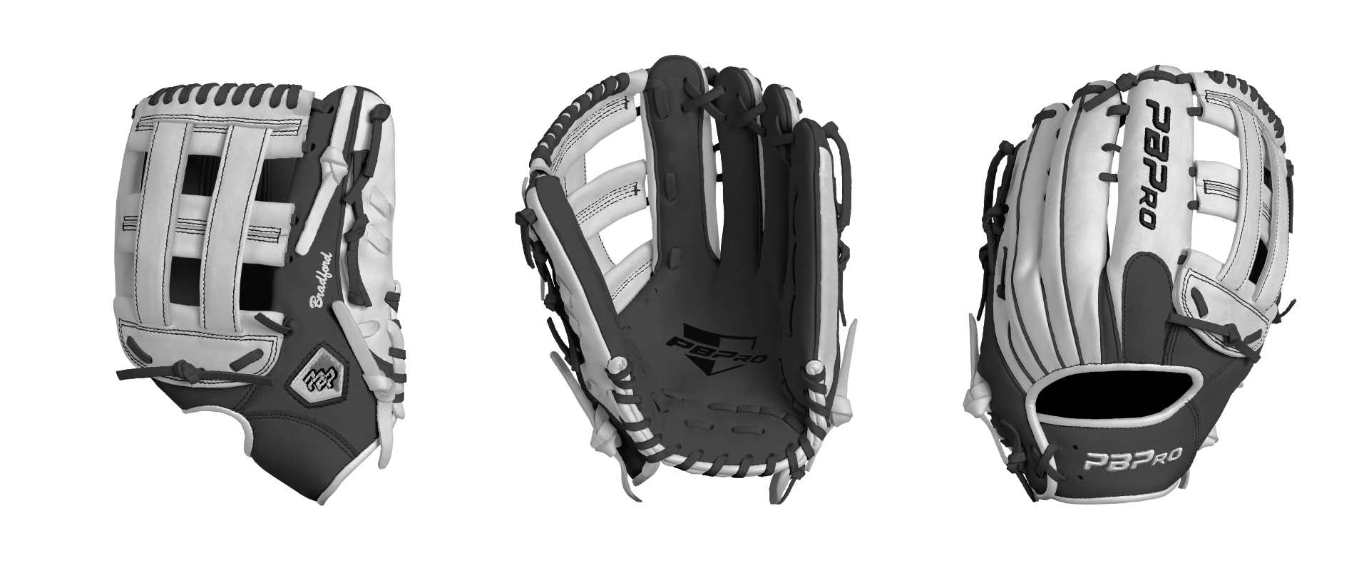 Category: PBPro Custom Product: Baseball Series: Travel Pro Series | USD 149.00 Glove Type: Fielders Size: 12.5" Finger Pad: With Finger Pad Web: Pro H Web Palm: Palm (Color: Black) Back Shell Main: Back Shell Main (Color: White) Back Shell Accent: Back Shell Accent (Color: Black) Web: Web (Color: White) Finger Pad: Finger Pad (Color: Black) Welting: Welting (Color: Black) Binding: Binding (Color: White) Lace: Lace (Color: Black) Logo and Label: Logo and Label (Color: White) Stitch: Stitch (Color: Black) Embroidery: Embroidery (Color: Black) Hand Throw: Right Hand Thrower Lace Length: Normal Name: Bradford (Font Style: Brush Script MT, Font Color: White, Patch Color: N/A) Flag (Ring Finger): United States Remarks: N/A