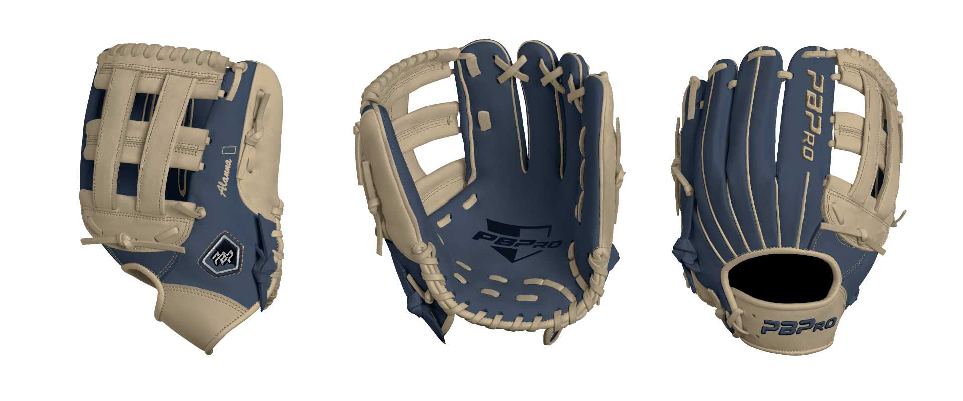 Category: PBPro Custom Product: Baseball Series: Travel Pro Series | USD 149.00 Glove Type: Fielders Size: 12.25" Finger Pad: Without Finger Pad Web: Pro H Web Palm: Palm (Color: Navy) Back Shell Main: Back Shell Main (Color: Navy) Back Shell Accent: Back Shell Accent (Color: Cream) Web: Web (Color: Cream) Welting: Welting (Color: Cream) Binding: Binding (Color: Cream) Lace: Lace (Color: Cream) Logo and Label: Logo and Label (Color: Navy) Stitch: Stitch (Color: Cream) Embroidery: Embroidery (Color: Cream) Hand Throw: Right Hand Thrower Lace Length: Normal Name: Alanna 🥰 (Font Style: Brush Script MT, Font Color: Cream, Patch Color: N/A) Flag (Ring Finger): N/A Remarks: N/A