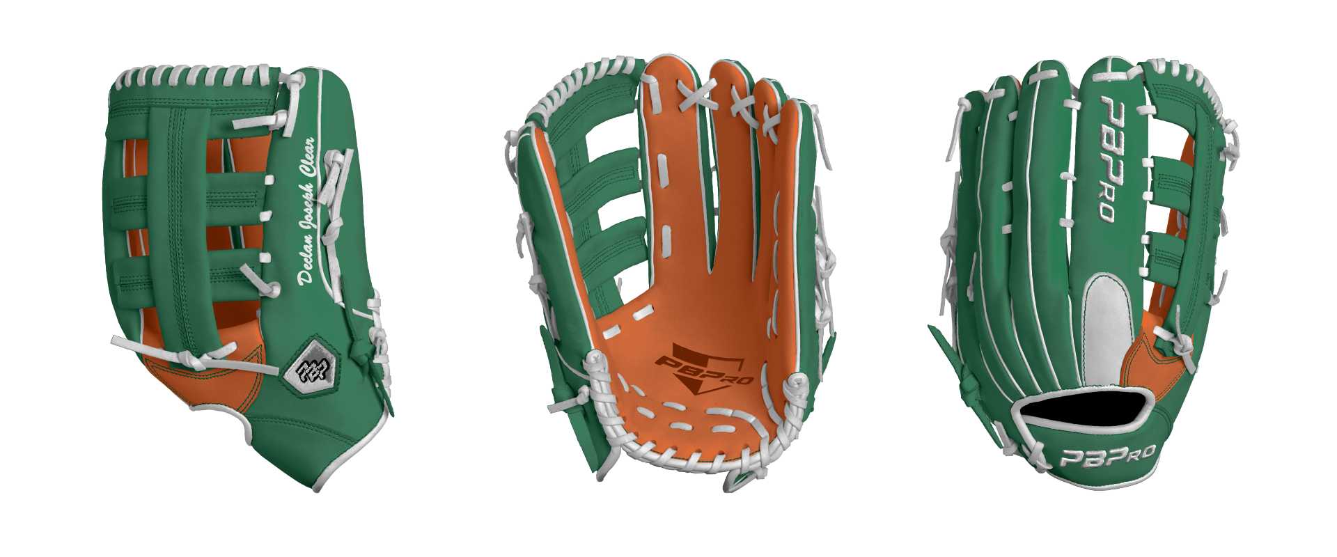 Category: PBPro Custom Product: Baseball Series: Travel Pro Series | USD 149.00 Glove Type: Fielders Size: 13" Finger Pad: With Finger Pad Web: Double Bar Web Palm: Palm (Color: Orange) Back Shell Main: Back Shell Main (Color: Green) Back Shell Accent: Back Shell Accent (Color: Green) Web: Web (Color: Green) Finger Pad: Finger Pad (Color: White) Welting: Welting (Color: White) Binding: Binding (Color: White) Lace: Lace (Color: White) Logo and Label: Logo and Label (Color: White) Stitch: Stitch (Color: Green) Embroidery: Embroidery (Color: White) Hand Throw: Right Hand Thrower Lace Length: Normal Name: Declan Joseph Clear (Font Style: Brush Script MT, Font Color: White, Patch Color: N/A) Flag (Ring Finger): Ireland Remarks: N/A