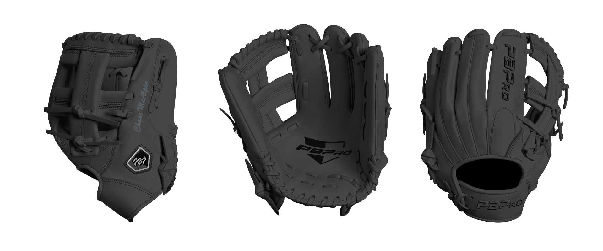 Category: PBPro Custom Product: Baseball Series: Travel Pro Series | USD 149.00 Glove Type: Fielders Size: 11.5" Finger Pad: With Finger Pad Web: New Cross Web Palm: Palm (Color: Black) Back Shell Main: Back Shell Main (Color: Black) Back Shell Accent: Back Shell Accent (Color: Black) Web: Web (Color: Black) Finger Pad: Finger Pad (Color: Black) Welting: Welting (Color: Black) Binding: Binding (Color: Black) Lace: Lace (Color: Black) Logo and Label: Logo and Label (Color: Black) Stitch: Stitch (Color: Black) Embroidery: Embroidery (Color: Black) Hand Throw: Right Hand Thrower Lace Length: Normal Name: Chase McAlpin (Font Style: Brush Script MT, Font Color: Steel Gray, Patch Color: N/A) Flag (Ring Finger): Texas Remarks: N/A