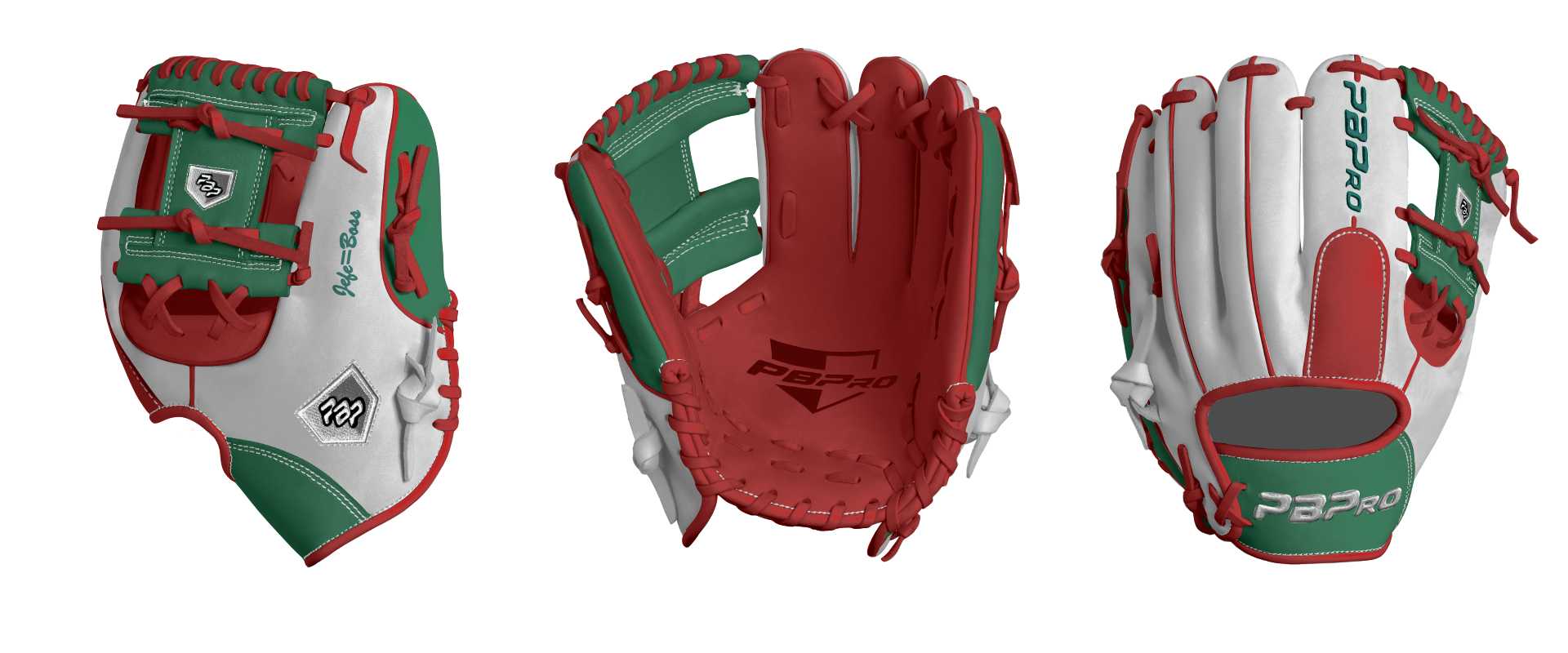 Category: PBPro Custom Product: Baseball Series: Travel Pro Series | USD 149.00 Glove Type: Fielders Size: 11" Finger Pad: With Finger Pad Web: Pro I Web Palm: Palm (Color: Red) Back Shell Main: Back Shell Main (Color: White) Back Shell Accent: Back Shell Accent (Color: Green) Web: Web (Color: Green) Finger Pad: Finger Pad (Color: Red) Welting: Welting (Color: Red) Binding: Binding (Color: Red) Lace: Lace (Color: Red) Logo and Label: Logo and Label (Color: White) Stitch: Stitch (Color: White) Embroidery: Embroidery (Color: Northwest Green) Hand Throw: Left Hand Thrower Lace Length: Long (will not show in customizer) Name: Jefe=Boss (Font Style: Brush Script MT, Font Color: Northwest Green, Patch Color: N/A) Flag (Ring Finger): N/A Remarks: N/A