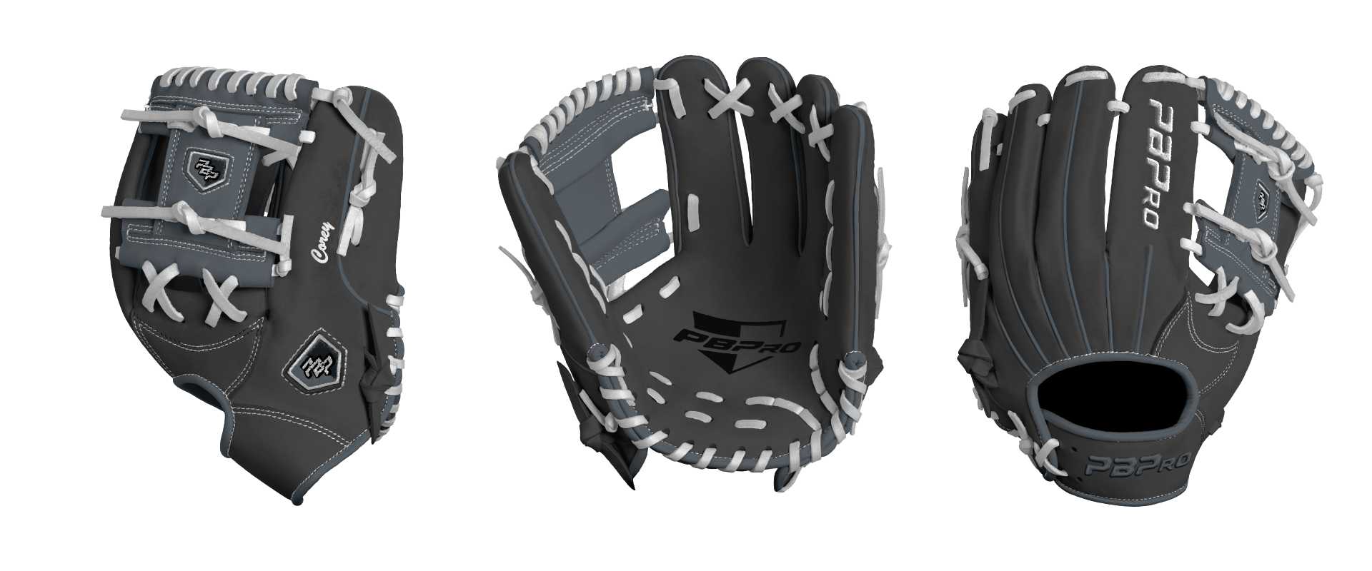 Category: PBPro Custom Product: Baseball Series: Travel Pro Series | USD 149.00 Glove Type: Fielders Size: 11.75" Finger Pad: Without Finger Pad Web: Pro I Web Palm: Palm (Color: Black) Back Shell Main: Back Shell Main (Color: Black) Back Shell Accent: Back Shell Accent (Color: Black) Web: Web (Color: Steel Gray) Welting: Welting (Color: Steel Gray) Binding: Binding (Color: Steel Gray) Lace: Lace (Color: White) Logo and Label: Logo and Label (Color: Steel Gray) Stitch: Stitch (Color: White) Embroidery: Embroidery (Color: White) Hand Throw: Right Hand Thrower Lace Length: Normal Name: Corey (Font Style: Brush Script MT, Font Color: White, Patch Color: N/A) Flag (Ring Finger): N/A Remarks: N/A