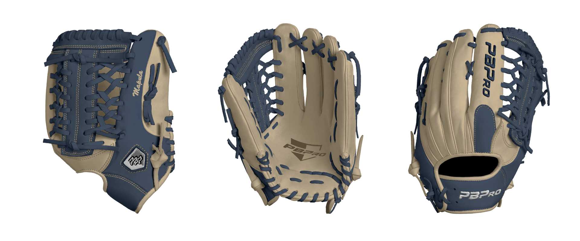 Category: PBPro Custom Product: Baseball Series: Travel Pro Series | USD 149.00 Glove Type: Fielders Size: 12.75" Finger Pad: With Finger Pad Web: Modified Trap Web Palm: Palm (Color: Cream) Back Shell Main: Back Shell Main (Color: Cream) Back Shell Accent: Back Shell Accent (Color: Navy) Web: Web (Color: Navy) Finger Pad: Finger Pad (Color: Navy) Welting: Welting (Color: Cream) Binding: Binding (Color: Cream) Lace: Lace (Color: Navy) Logo and Label: Logo and Label (Color: Cream) Stitch: Stitch (Color: Cream) Embroidery: Embroidery (Color: Navy) Hand Throw: Right Hand Thrower Lace Length: Normal Name: Mapula (Font Style: Brush Script MT, Font Color: Cream, Patch Color: N/A) Flag (Ring Finger): N/A Remarks: Believe in your glove and God