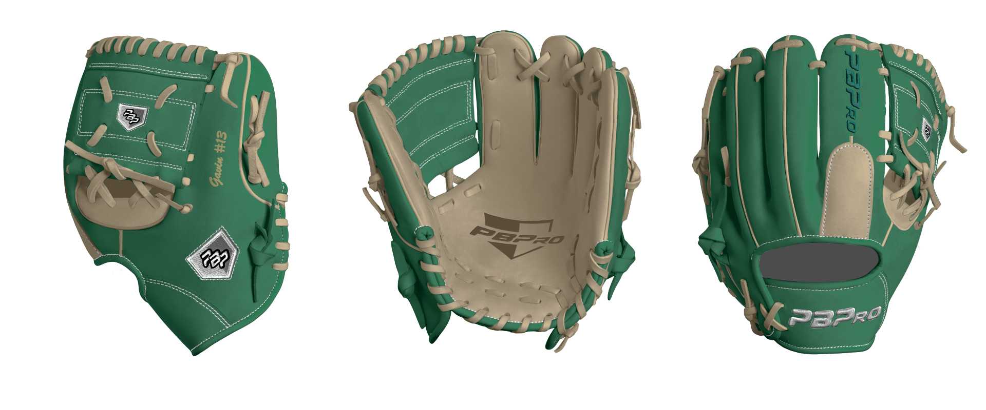 Category: PBPro Custom Product: Baseball Series: Travel Pro Series | USD 149.00 Glove Type: Fielders Size: 11" Finger Pad: With Finger Pad Web: One Piece Web Palm: Palm (Color: Cream) Back Shell Main: Back Shell Main (Color: Green) Back Shell Accent: Back Shell Accent (Color: Green) Web: Web (Color: Green) Finger Pad: Finger Pad (Color: Cream) Welting: Welting (Color: Cream) Binding: Binding (Color: Green) Lace: Lace (Color: Cream) Logo and Label: Logo and Label (Color: White) Stitch: Stitch (Color: White) Embroidery: Embroidery (Color: Northwest Green) Hand Throw: Right Hand Thrower Lace Length: Normal Name: Gavin #13 (Font Style: Brush Script MT, Font Color: Vegas Gold, Patch Color: N/A) Flag (Ring Finger): United States Remarks: IF archers