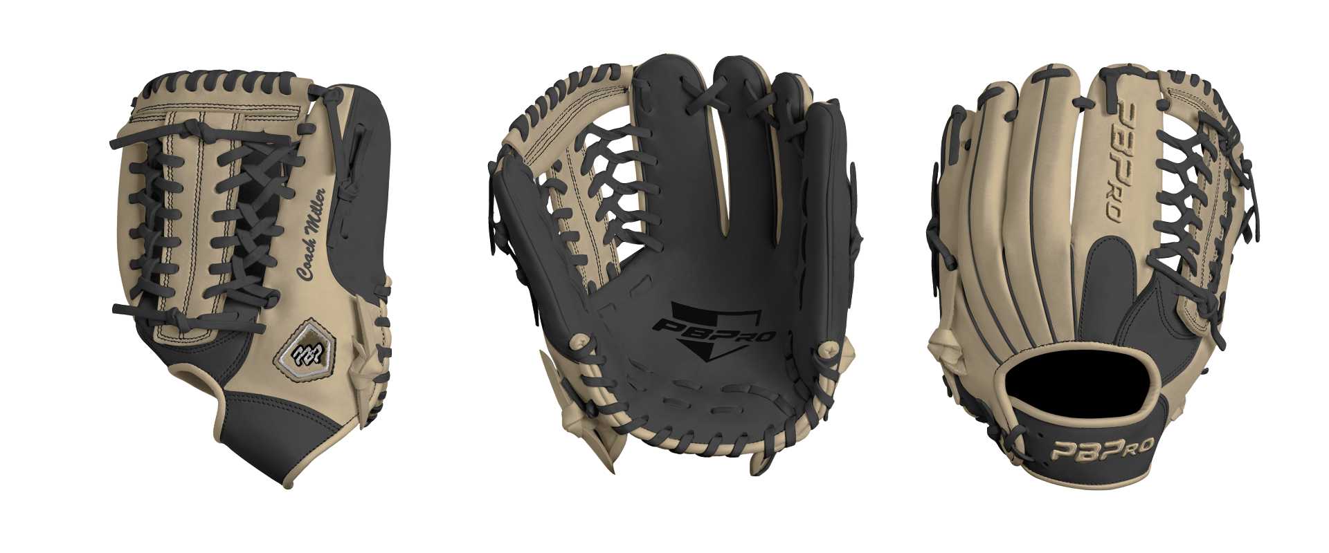 Category: PBPro Custom Product: Baseball Series: Travel Pro Series | USD 149.00 Glove Type: Fielders Size: 11.25" Finger Pad: With Finger Pad Web: Modified Trap Web Palm: Palm (Color: Black) Back Shell Main: Back Shell Main (Color: Cream) Back Shell Accent: Back Shell Accent (Color: Black) Web: Web (Color: Cream) Finger Pad: Finger Pad (Color: Black) Welting: Welting (Color: Black) Binding: Binding (Color: Cream) Lace: Lace (Color: Black) Logo and Label: Logo and Label (Color: Cream) Stitch: Stitch (Color: Black) Embroidery: Embroidery (Color: Cream) Hand Throw: Right Hand Thrower Lace Length: Normal Name: Coach Miller (Font Style: Brush Script MT, Font Color: Black, Patch Color: N/A) Flag (Ring Finger): Chicago Remarks: N/A