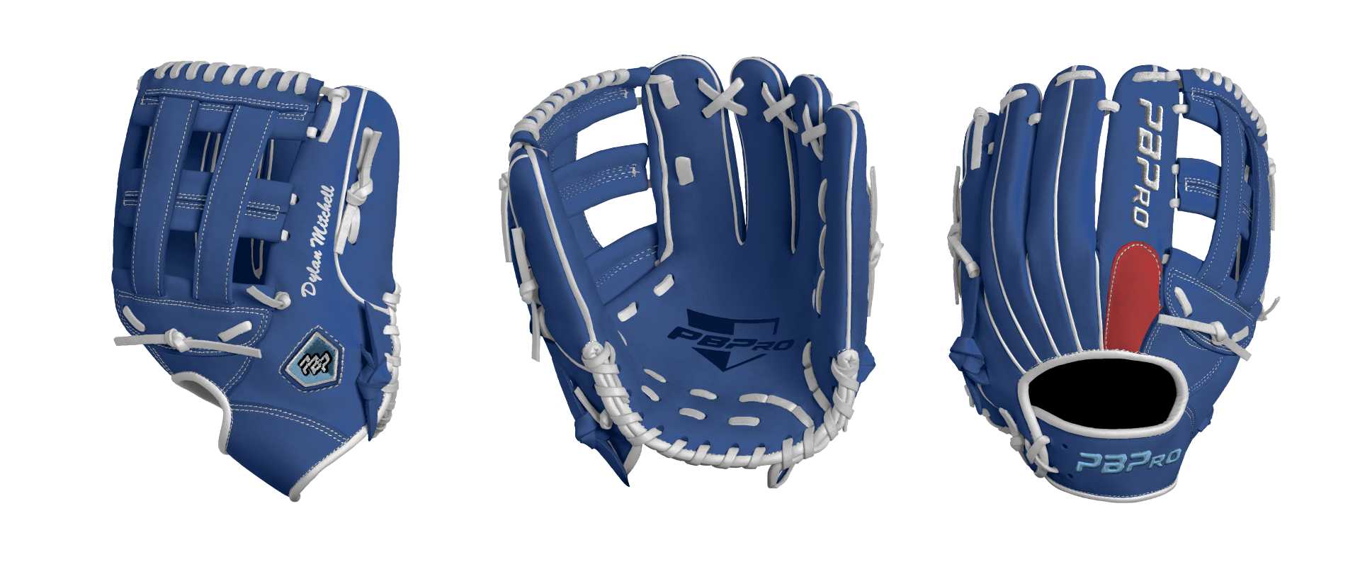 Category: PBPro Custom Product: Baseball Series: Travel Pro Series | USD 149.00 Glove Type: Fielders Size: 11.75" Finger Pad: With Finger Pad Web: Pro H Web Palm: Palm (Color: Royal) Back Shell Main: Back Shell Main (Color: Royal) Back Shell Accent: Back Shell Accent (Color: Royal) Web: Web (Color: Royal) Finger Pad: Finger Pad (Color: Red) Welting: Welting (Color: White) Binding: Binding (Color: White) Lace: Lace (Color: White) Logo and Label: Logo and Label (Color: Columbia Blue) Stitch: Stitch (Color: White) Embroidery: Embroidery (Color: White) Hand Throw: Right Hand Thrower Lace Length: Long (will not show in customizer) Name: Dylan Mitchell (Font Style: Brush Script MT, Font Color: White, Patch Color: N/A) Flag (Ring Finger): United States Remarks: N/A