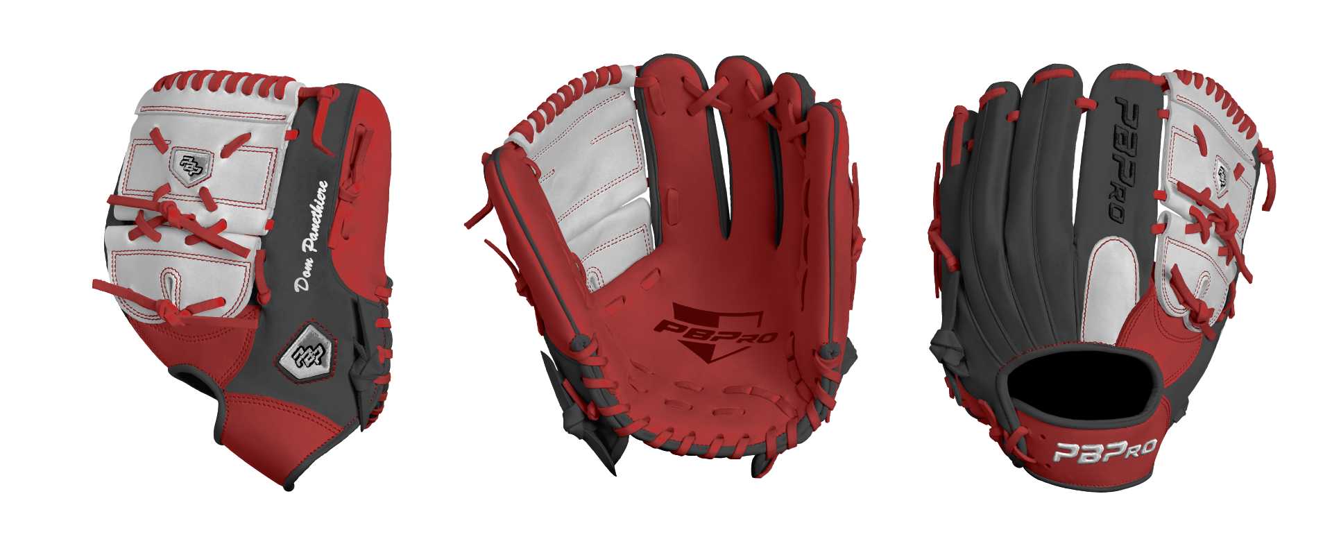 Category: PBPro Custom Product: Baseball Series: Travel Pro Series | USD 159.00 Glove Type: Fielders Size: 12" Finger Pad: With Finger Pad Web: Two Piece Web Palm: Palm (Color: Red) Back Shell Main: Back Shell Main (Color: Black) Back Shell Accent: Back Shell Accent (Color: Red) Web: Web (Color: White) Finger Pad: Finger Pad (Color: White) Welting: Welting (Color: Black) Binding: Binding (Color: Black) Lace: Lace (Color: Red) Logo and Label: Logo and Label (Color: White) Stitch: Stitch (Color: Red) Embroidery: Embroidery (Color: Black) Hand Throw: Right Hand Thrower Lace Length: Long (will not show in customizer) Flex (will not show in customizer): Pro Flex: (Ideal for Pro Player who wants to have more control in forming the glove) Wrist Opening (will not show in customizer): Standard Wrist Name: Dom Panethiere (Font Style: Brush Script MT, Font Color: White, Patch Color: N/A) Flag (Ring Finger): N/A Remarks: N/A