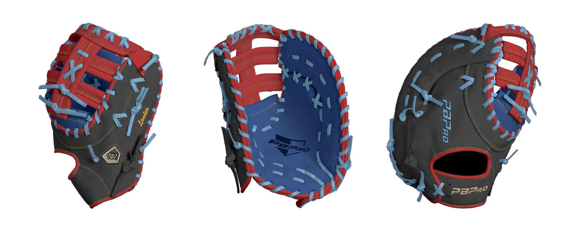 Category: PBPro Custom Product: Baseball Series: Travel Pro Series | USD 159.00 Glove Type: Mitts Size: 13" First Base Palm: Palm (Color: Royal) Back Shell: Back Shell (Color: Black) Web: Web (Color: Red) Binding: Binding (Color: Red) Lace: Lace (Color: Columbia Blue) Logo and Label: Logo and Label (Color: Cream) Stitch: Stitch (Color: Vegas Gold) Embroidery: Embroidery (Color: Columbia Blue) Hand Throw: Right Hand Thrower Lace Length: Long (will not show in customizer) Name: Landen (Font Style: Brush Script MT, Font Color: G.Yellow, Patch Color: N/A) Flag (Ring Finger): United States Remarks: N/A