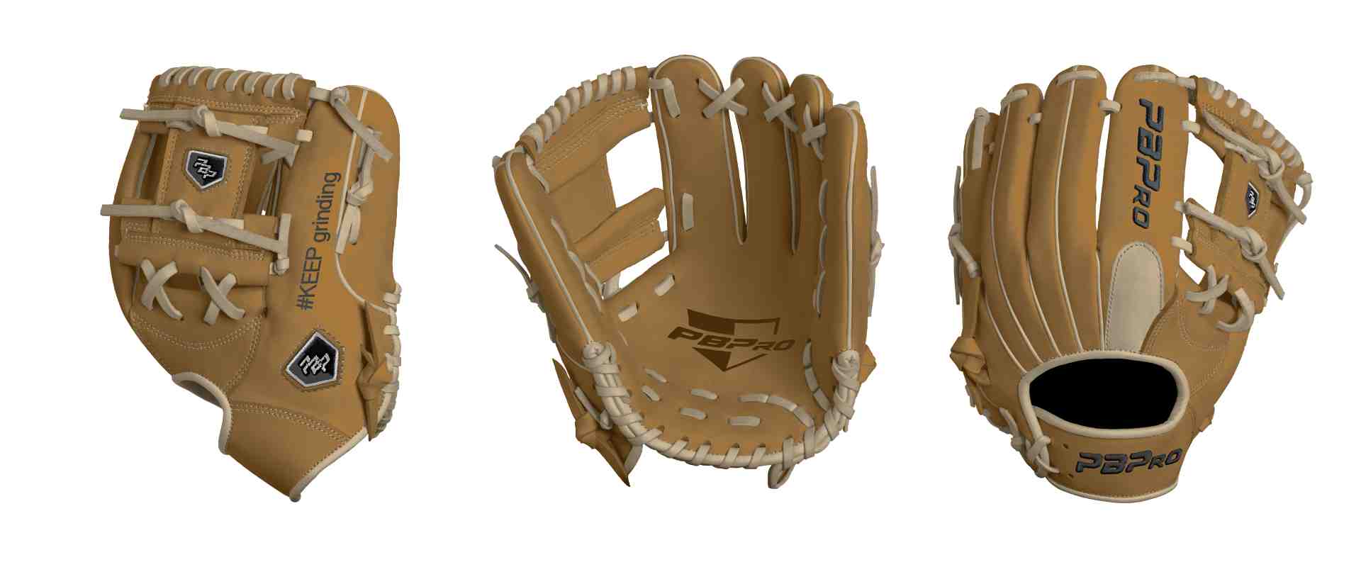 Category: PBPro Custom Product: Baseball Series: Travel Pro Series | USD 159.00 Glove Type: Fielders Size: 11.5" Finger Pad: With Finger Pad Web: Pro I Web Palm: Palm (Color: Tan) Back Shell Main: Back Shell Main (Color: Tan) Back Shell Accent: Back Shell Accent (Color: Tan) Web: Web (Color: Tan) Finger Pad: Finger Pad (Color: Cream) Welting: Welting (Color: Cream) Binding: Binding (Color: Cream) Lace: Lace (Color: Cream) Logo and Label: Logo and Label (Color: Black) Stitch: Stitch (Color: Cream) Embroidery: Embroidery (Color: Steel Gray) Hand Throw: Right Hand Thrower Lace Length: Normal Flex (will not show in customizer): Standard Flex: ( Ideal for Youth Player. Glove still needs to break in) Wrist Opening (will not show in customizer): Standard Wrist Name: #KEEP grinding (Font Style: Pontano Sans, Font Color: Black, Patch Color: N/A) Flag (Ring Finger): N/A Remarks: N/A