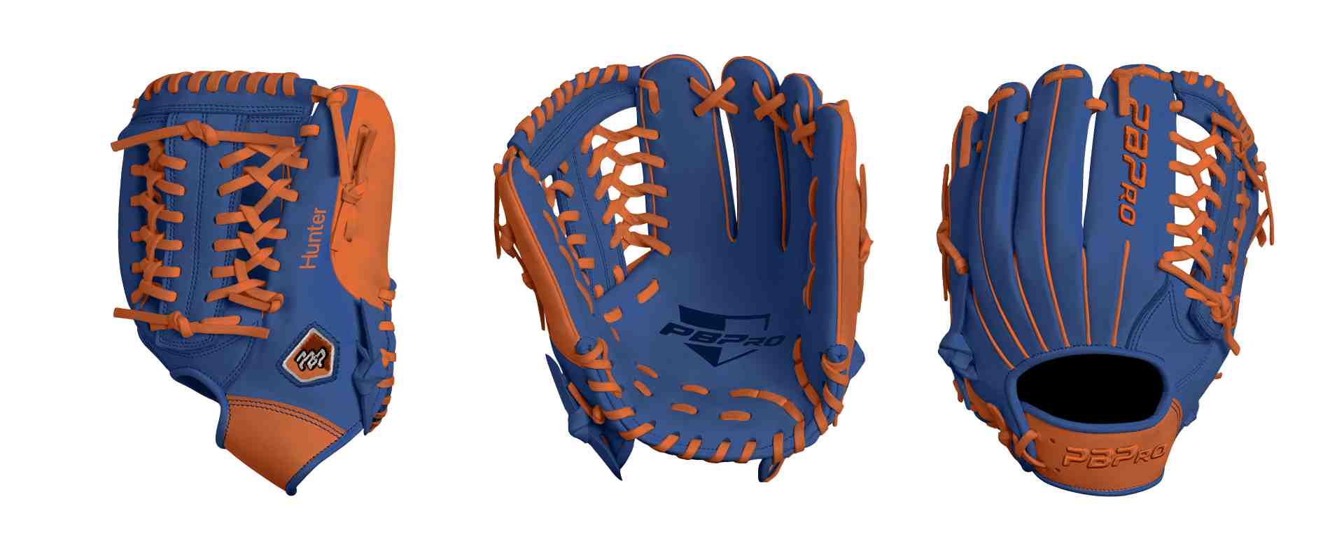 Category: PBPro Custom Product: Baseball Series: Travel Pro Series | USD 159.00 Glove Type: Fielders Size: 11.25" Finger Pad: Without Finger Pad Web: Modified Trap Web Palm: Palm (Color: Royal) Back Shell Main: Back Shell Main (Color: Royal) Back Shell Accent: Back Shell Accent (Color: Orange) Web: Web (Color: Royal) Welting: Welting (Color: Orange) Binding: Binding (Color: Royal) Lace: Lace (Color: Orange) Logo and Label: Logo and Label (Color: Orange) Stitch: Stitch (Color: Royal) Embroidery: Embroidery (Color: Orange) Hand Throw: Right Hand Thrower Lace Length: Normal Flex (will not show in customizer): Standard Flex: ( Ideal for Youth Player. Glove still needs to break in) Wrist Opening (will not show in customizer): Standard Wrist Name: Hunter (Font Style: Pontano Sans, Font Color: Orange, Patch Color: N/A) Flag (Ring Finger): N/A Remarks: N/A