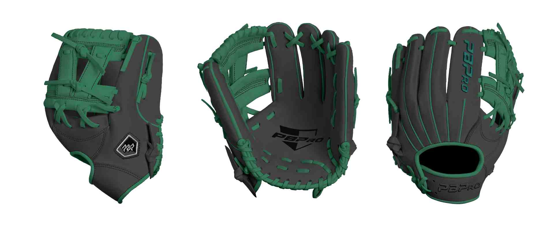 Category: PBPro Custom Product: Baseball Series: Travel Pro Series | USD 159.00 Glove Type: Fielders Size: 11.75" Finger Pad: Without Finger Pad Web: Pro V Web Palm: Palm (Color: Black) Back Shell Main: Back Shell Main (Color: Black) Back Shell Accent: Back Shell Accent (Color: Black) Web: Web (Color: Green) Welting: Welting (Color: Green) Binding: Binding (Color: Green) Lace: Lace (Color: Green) Logo and Label: Logo and Label (Color: Black) Stitch: Stitch (Color: Black) Embroidery: Embroidery (Color: Northwest Green) Hand Throw: Right Hand Thrower Lace Length: Normal Flex (will not show in customizer): Pro Flex: (Ideal for Pro Player who wants to have more control in forming the glove) Wrist Opening (will not show in customizer): Standard Wrist Flag (Ring Finger): N/A Remarks: N/A