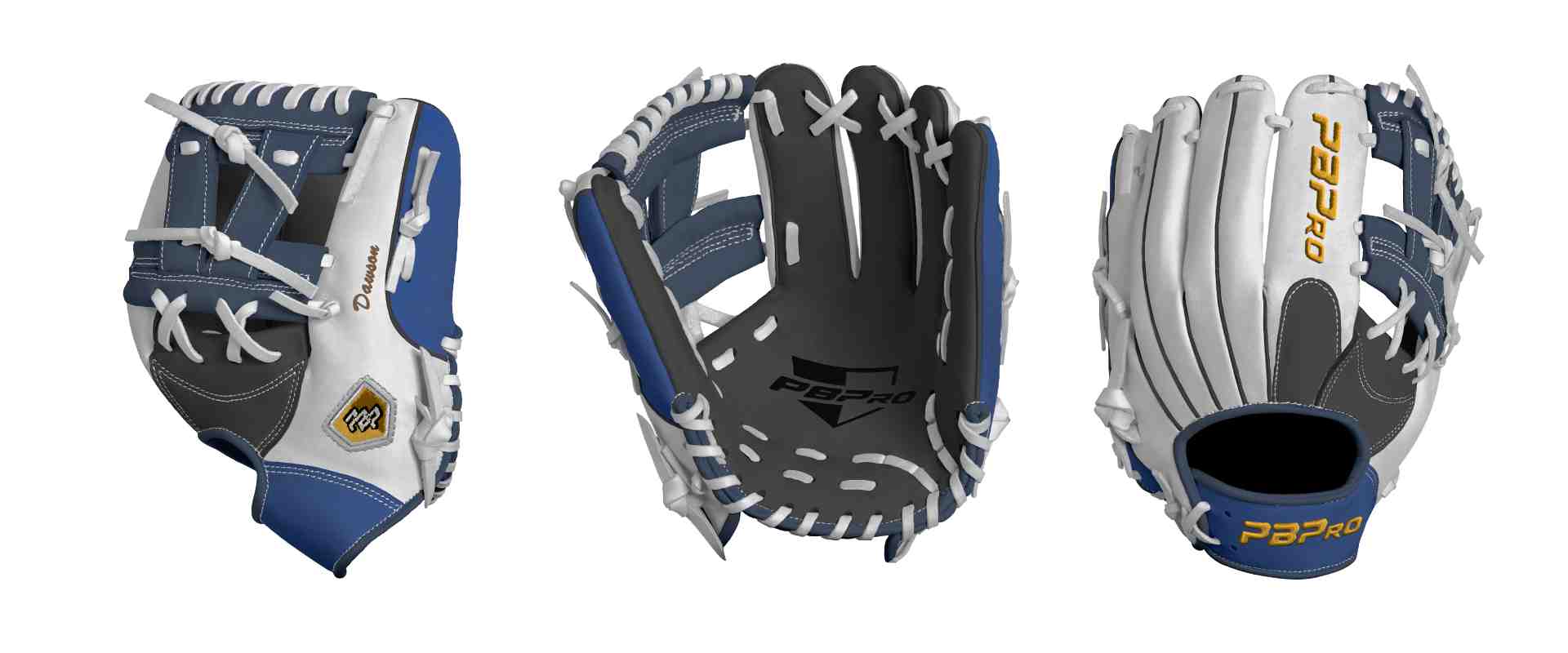 Category: PBPro Custom Product: Baseball Series: Travel Pro Series | USD 159.00 Glove Type: Fielders Size: 11.25" Finger Pad: With Finger Pad Web: Pro V Web Palm: Palm (Color: Black) Back Shell Main: Back Shell Main (Color: White) Back Shell Accent: Back Shell Accent (Color: Royal) Web: Web (Color: Navy) Finger Pad: Finger Pad (Color: Black) Welting: Welting (Color: Black) Binding: Binding (Color: Navy) Lace: Lace (Color: White) Logo and Label: Logo and Label (Color: G.Yellow) Stitch: Stitch (Color: White) Embroidery: Embroidery (Color: G.Yellow) Hand Throw: Right Hand Thrower Lace Length: Normal Flex (will not show in customizer): Standard Flex: ( Ideal for Youth Player. Glove still needs to break in) Wrist Opening (will not show in customizer): Standard Wrist Name: Dawson (Font Style: Brush Script MT, Font Color: Dark Brown, Patch Color: N/A) Flag (Ring Finger): United States Remarks: N/A