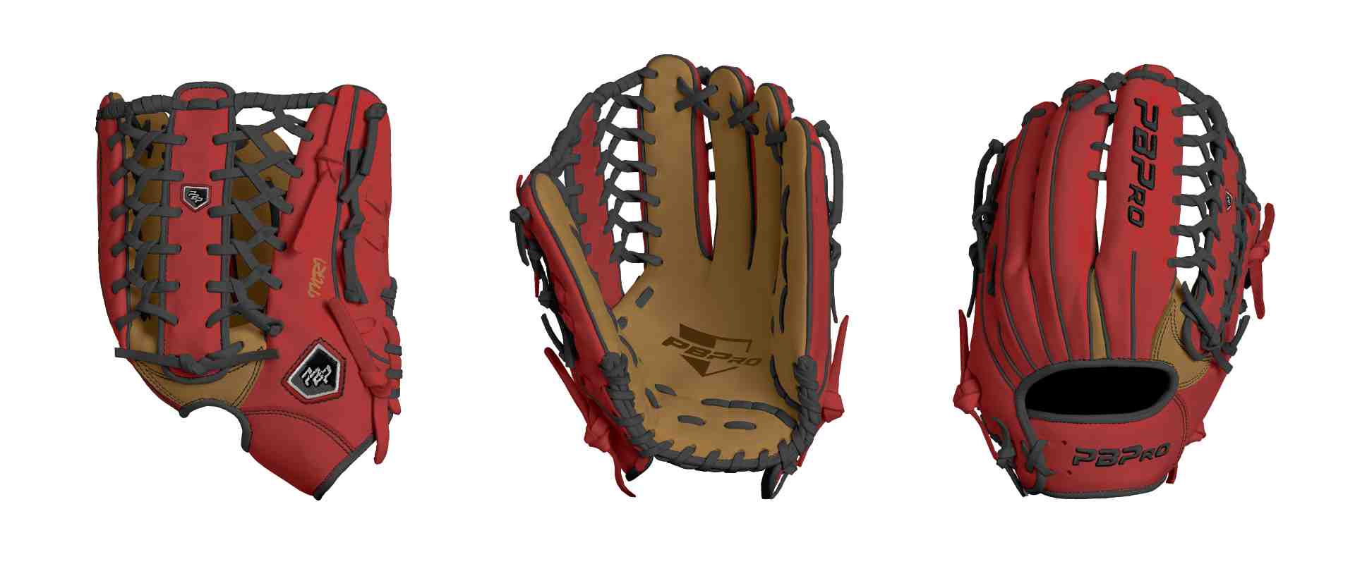 Category: PBPro Custom Product: Baseball Series: Travel Pro Series | USD 159.00 Glove Type: Fielders Size: 12.5" Finger Pad: Without Finger Pad Web: Trapeze Web Palm: Palm (Color: Tan) Back Shell Main: Back Shell Main (Color: Red) Back Shell Accent: Back Shell Accent (Color: Red) Web: Web (Color: Red) Welting: Welting (Color: Black) Binding: Binding (Color: Black) Lace: Lace (Color: Black) Logo and Label: Logo and Label (Color: Black) Stitch: Stitch (Color: Black) Embroidery: Embroidery (Color: Black) Hand Throw: Right Hand Thrower Lace Length: Normal Flex (will not show in customizer): Standard Flex: ( Ideal for Youth Player. Glove still needs to break in) Wrist Opening (will not show in customizer): Standard Wrist Name: INRI (Font Style: Brush Script MT, Font Color: Tan, Patch Color: N/A) Flag (Ring Finger): Georgia Remarks: N/A