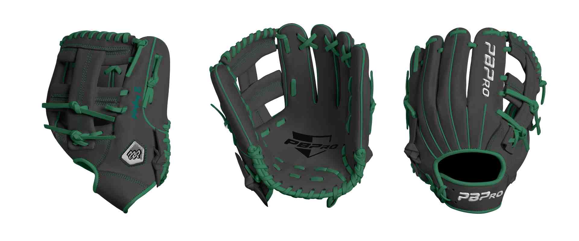 Category: PBPro Custom Product: Baseball Series: Travel Pro Series | USD 159.00 Glove Type: Fielders Size: 11.75" Finger Pad: Without Finger Pad Web: New Cross Web Palm: Palm (Color: Black) Back Shell Main: Back Shell Main (Color: Black) Back Shell Accent: Back Shell Accent (Color: Black) Web: Web (Color: Black) Welting: Welting (Color: Green) Binding: Binding (Color: Green) Lace: Lace (Color: Green) Logo and Label: Logo and Label (Color: White) Stitch: Stitch (Color: Green) Embroidery: Embroidery (Color: White) Hand Throw: Right Hand Thrower Lace Length: Normal Flex (will not show in customizer): Pro Flex: (Ideal for Pro Player who wants to have more control in forming the glove) Wrist Opening (will not show in customizer): Standard Wrist Name: playboy E (Font Style: Brush Script MT, Font Color: Northwest Green, Patch Color: N/A) Flag (Ring Finger): N/A Remarks: N/A