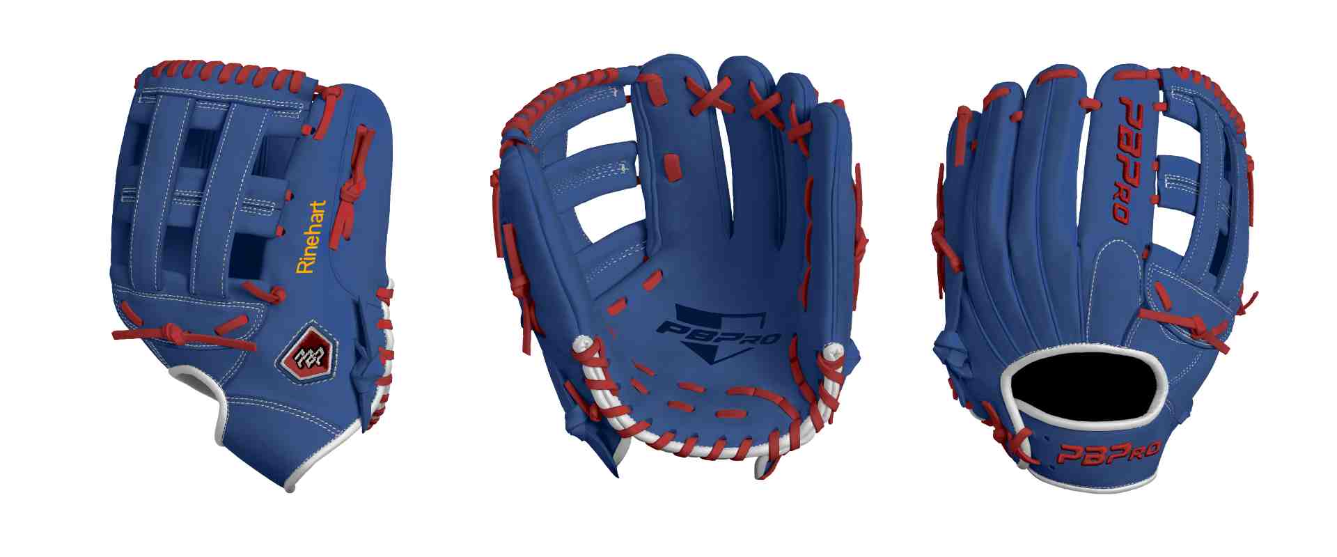 Category: PBPro Custom Product: Baseball Series: Travel Pro Series | USD 159.00 Glove Type: Fielders Size: 12.25" Finger Pad: With Finger Pad Web: Pro H Web Palm: Palm (Color: Royal) Back Shell Main: Back Shell Main (Color: Royal) Back Shell Accent: Back Shell Accent (Color: Royal) Web: Web (Color: Royal) Finger Pad: Finger Pad (Color: Royal) Welting: Welting (Color: Royal) Binding: Binding (Color: White) Lace: Lace (Color: Red) Logo and Label: Logo and Label (Color: Red) Stitch: Stitch (Color: White) Embroidery: Embroidery (Color: Red) Hand Throw: Right Hand Thrower Lace Length: Normal Flex (will not show in customizer): Pro Flex: (Ideal for Pro Player who wants to have more control in forming the glove) Wrist Opening (will not show in customizer): Standard Wrist Name: Rinehart (Font Style: Pontano Sans, Font Color: Golden Yellow, Patch Color: N/A) Flag (Ring Finger): United States Remarks: N/A