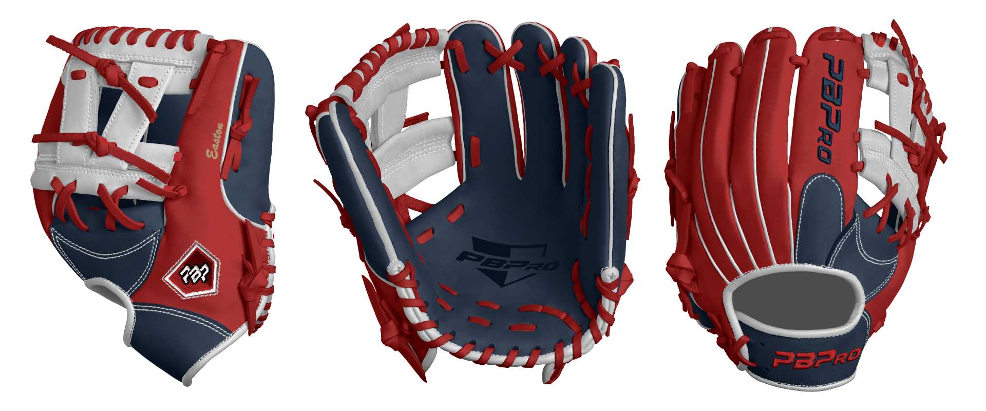 Category: PBPro Custom Product: Fielders-PBPro Series: Phantom Series | USD 159.00 Size: 11.25" Finger Pad: With Finger Pad Web: Pro V Web Palm: Palm (Color: Navy) Back Shell Main: Back Shell Main (Color: Red) Back Shell Accent: Back Shell Accent (Color: Navy) Web: Web (Color: White) Finger Pad: Finger Pad (Color: Navy) Welting: Welting (Color: White) Binding: Binding (Color: White) Lace: Lace (Color: Red) Logo and Label: Logo and Label (Color: Red) Stitch: Stitch (Color: White) Embroidery: Embroidery (Color: Navy) Hand Throw: Right Hand Thrower Lace Length: Normal Name: Easton (Font Style: Brush Script MT, Color: Vegas Gold) Flag (Ring Finger): United States Remarks: N/A