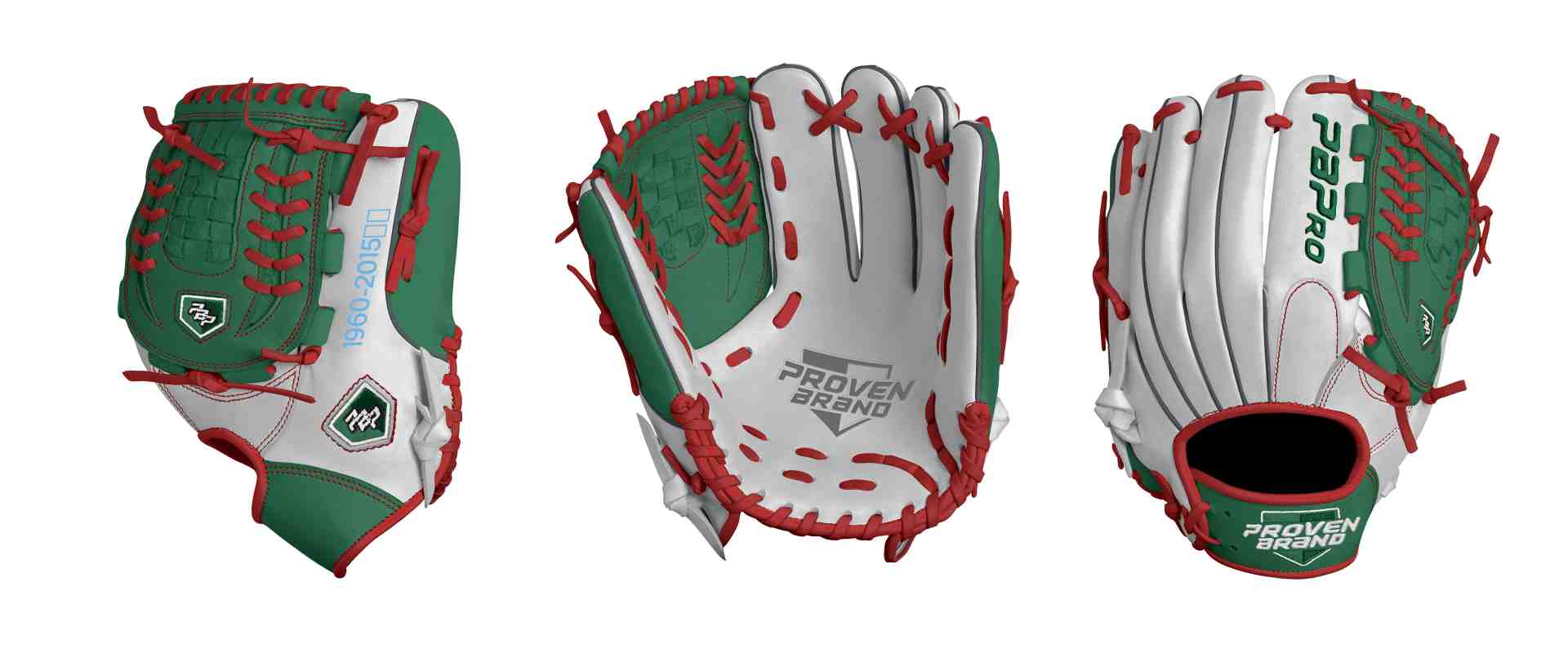 Category: PBPro Custom Product: Baseball Series: Phantom Series | USD 169.00 Glove Type: Fielders Size: 11.75" Finger Pad: With Finger Pad Web: Grid and Net Web Palm: Palm (Color: White) Back Shell Main: Back Shell Main (Color: White) Back Shell Accent: Back Shell Accent (Color: Green) Web: Web (Color: Green) Finger Pad: Finger Pad (Color: White) Welting: Welting (Color: Steel Gray) Binding: Binding (Color: Red) Lace: Lace (Color: Red) Logo and Label-flat: Logo and Label-flat (Color: Green) Stitch: Stitch (Color: Red) Embroidery: Embroidery (Color: Green) Hand Throw: Right Hand Thrower Lace Length: Normal Flex (will not show in customizer): Pro Flex: (Ideal for Pro Player who wants to have more control in forming the glove) Wrist Opening (will not show in customizer): Standard Wrist Name: 1960-2015💔🕊 (Font Style: Pontano Sans, Font Color: Columbia Blue, Patch Color: N/A) Flag (Ring Finger): Mexico Remarks: Kian