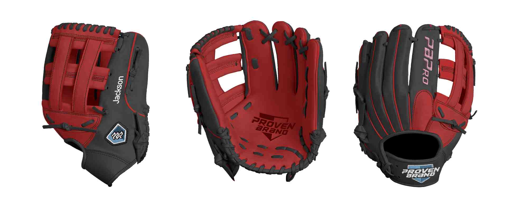 Category: PBPro Custom Product: Baseball Series: Phantom Series | USD 169.00 Glove Type: Fielders Size: 12" Finger Pad: With Finger Pad Web: Pro H Web Palm: Palm (Color: Red) Back Shell Main: Back Shell Main (Color: Black) Back Shell Accent: Back Shell Accent (Color: Black) Web: Web (Color: Red) Finger Pad: Finger Pad (Color: Red) Welting: Welting (Color: Red) Binding: Binding (Color: Black) Lace: Lace (Color: Black) Logo and Label-flat: Logo and Label-flat (Color: Columbia Blue) Stitch: Stitch (Color: Black) Embroidery: Embroidery (Color: Carnation Pink) Hand Throw: Right Hand Thrower Lace Length: Normal Flex (will not show in customizer): Standard Flex: ( Ideal for Youth Player. Glove still needs to break in) Wrist Opening (will not show in customizer): Standard Wrist Name: Jackson (Font Style: Pontano Sans, Font Color: White, Patch Color: N/A) Flag (Ring Finger): Georgia Remarks: N/A