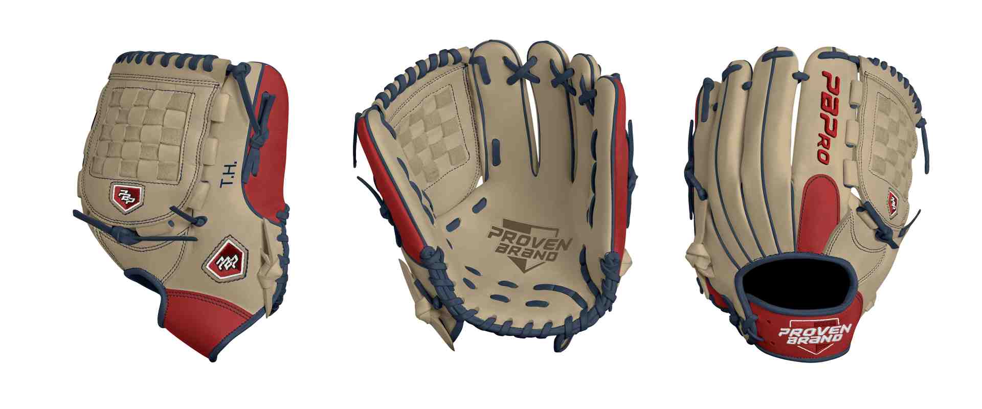 Category: PBPro Custom Product: Baseball Series: Phantom Series | USD 169.00 Glove Type: Fielders Size: 12" Finger Pad: With Finger Pad Web: Hinged Basket Web Palm: Palm (Color: Cream) Back Shell Main: Back Shell Main (Color: Cream) Back Shell Accent: Back Shell Accent (Color: Red) Web: Web (Color: Cream) Finger Pad: Finger Pad (Color: Red) Welting: Welting (Color: Navy) Binding: Binding (Color: Navy) Lace: Lace (Color: Navy) Logo and Label-flat: Logo and Label-flat (Color: Red) Stitch: Stitch (Color: Navy) Embroidery: Embroidery (Color: Red) Hand Throw: Right Hand Thrower Lace Length: Normal Flex (will not show in customizer): Standard Flex: ( Ideal for Youth Player. Glove still needs to break in) Wrist Opening (will not show in customizer): Custom Wrist : (Player can put their wrist circumference in the remarks section and we'll adjust the fit on the wrist) Name: T.H. (Font Style: Pontano Sans, Font Color: Navy, Patch Color: N/A) Flag (Ring Finger): Texas Remarks: Wrist size- 9"