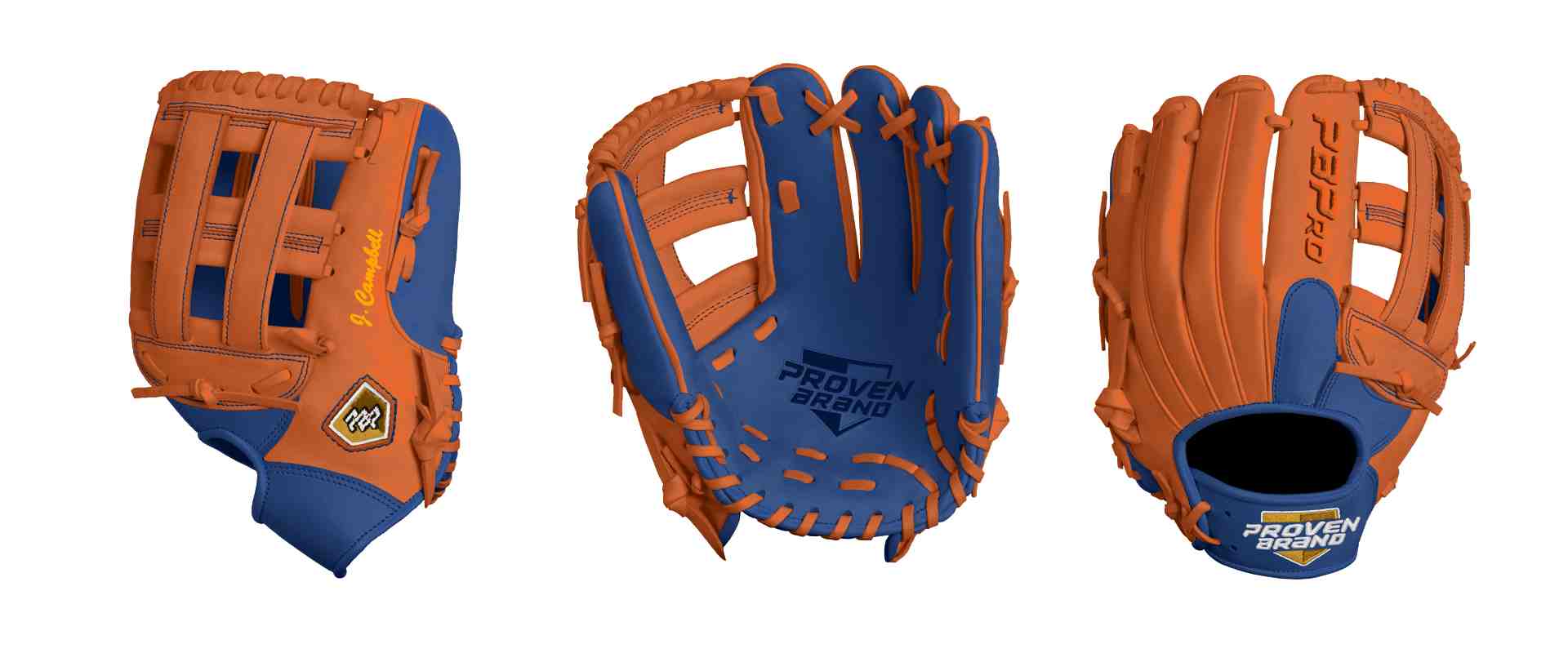 Category: PBPro Custom Product: Baseball Series: Phantom Series | USD 169.00 Glove Type: Fielders Size: 12" Finger Pad: With Finger Pad Web: Pro H Web Palm: Palm (Color: Royal) Back Shell Main: Back Shell Main (Color: Orange) Back Shell Accent: Back Shell Accent (Color: Royal) Web: Web (Color: Orange) Finger Pad: Finger Pad (Color: Royal) Welting: Welting (Color: Orange) Binding: Binding (Color: Royal) Lace: Lace (Color: Orange) Logo and Label-flat: Logo and Label-flat (Color: Golden Yellow) Stitch: Stitch (Color: Royal) Embroidery: Embroidery (Color: Orange) Hand Throw: Right Hand Thrower Lace Length: Long (will not show in customizer) Flex (will not show in customizer): Pro Flex: (Ideal for Pro Player who wants to have more control in forming the glove) Wrist Opening (will not show in customizer): Standard Wrist Name: J.Campbell (Font Style: Brush Script MT, Font Color: Golden Yellow, Patch Color: N/A) Flag (Ring Finger): Puerto Rico Remarks: N/A