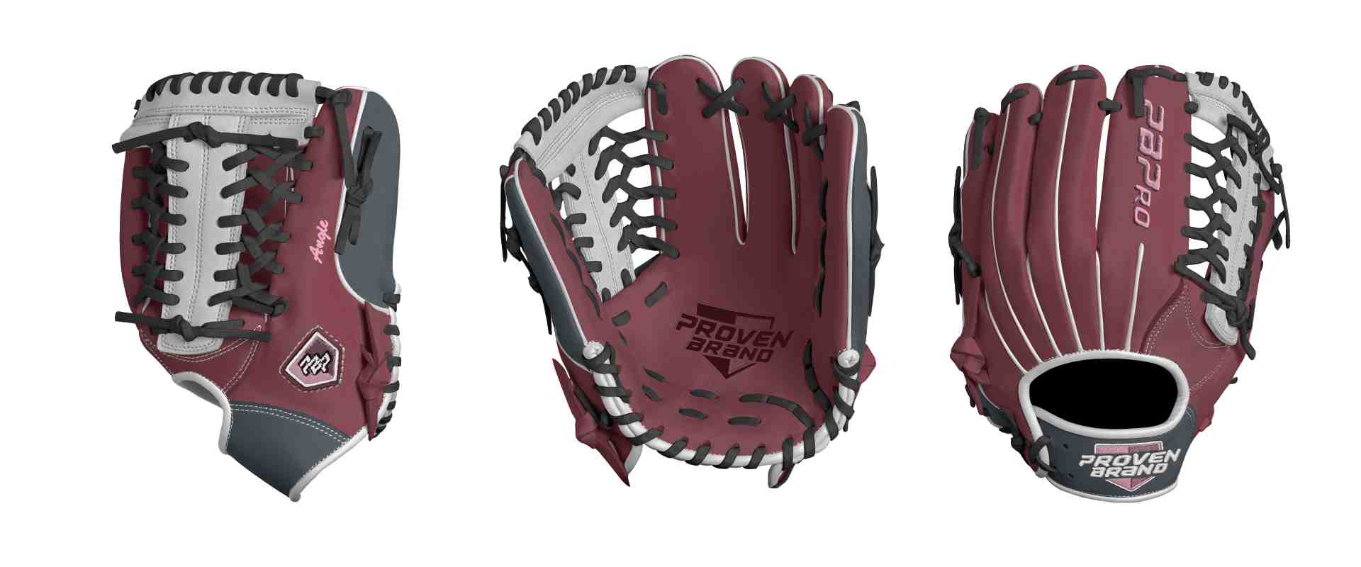 Category: PBPro Custom Product: Baseball Series: Phantom Series | USD 169.00 Glove Type: Fielders Size: 11.5 Finger Pad: Without Finger Pad Web: Modified Trap Web Palm: Palm (Color: Maroon) Back Shell Main: Back Shell Main (Color: Maroon) Back Shell Accent: Back Shell Accent (Color: Steel Gray) Web: Web (Color: White) Welting: Welting (Color: White) Binding: Binding (Color: White) Lace: Lace (Color: Black) Logo and Label-flat: Logo and Label-flat (Color: Carnation Pink) Stitch: Stitch (Color: White) Embroidery: Embroidery (Color: Carnation Pink) Hand Throw: Right Hand Thrower Lace Length: Normal Flex (will not show in customizer): Standard Flex: ( Ideal for Youth Player. Glove still needs to break in) Wrist Opening (will not show in customizer): Standard Wrist Name: Angie (Font Style: Brush Script MT, Font Color: Carnation Pink, Patch Color: N/A) Flag (Ring Finger): N/A Remarks: N/A