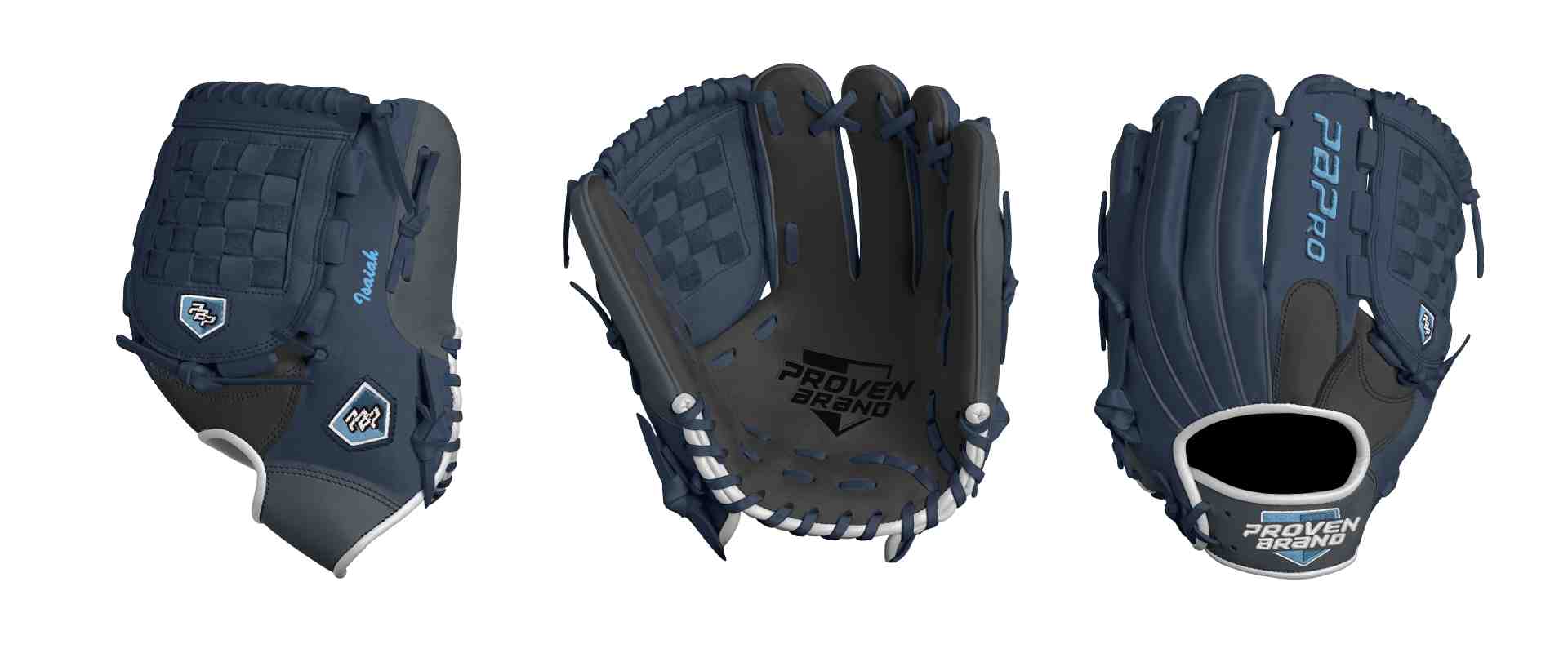 Category: PBPro Custom Product: Baseball Series: Phantom Series | USD 169.00 Glove Type: Fielders Size: 12.25" Finger Pad: With Finger Pad Web: Hinged Basket Web Palm: Palm (Color: Black) Back Shell Main: Back Shell Main (Color: Navy) Back Shell Accent: Back Shell Accent (Color: Steel Gray) Web: Web (Color: Navy) Finger Pad: Finger Pad (Color: Black) Welting: Welting (Color: Steel Gray) Binding: Binding (Color: White) Lace: Lace (Color: Navy) Logo and Label-flat: Logo and Label-flat (Color: Columbia Blue) Stitch: Stitch (Color: Navy) Embroidery: Embroidery (Color: Columbia Blue) Hand Throw: Right Hand Thrower Lace Length: Normal Flex (will not show in customizer): Standard Flex: ( Ideal for Youth Player. Glove still needs to break in) Wrist Opening (will not show in customizer): Standard Wrist Name: Isaiah (Font Style: Brush Script MT, Font Color: Columbia Blue, Patch Color: N/A) Flag (Ring Finger): California Remarks: N/A