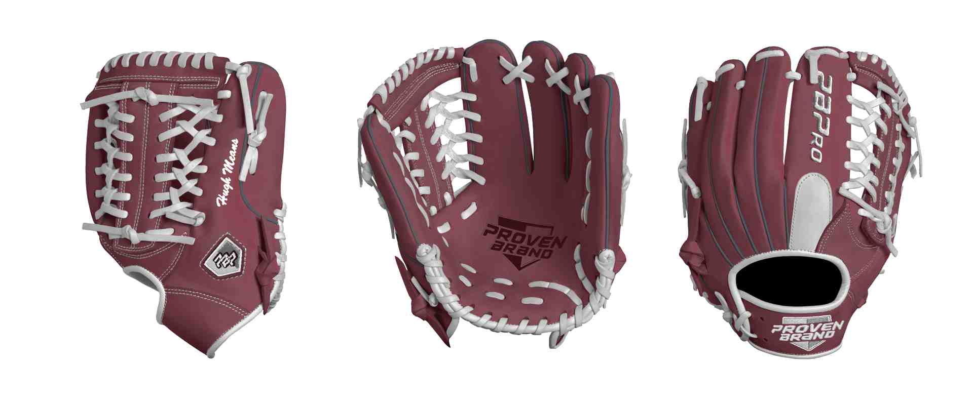Category: PBPro Custom Product: Baseball Series: Phantom Series | USD 169.00 Glove Type: Fielders Size: 12.25" Finger Pad: With Finger Pad Web: Modified Trap Web Palm: Palm (Color: Maroon) Back Shell Main: Back Shell Main (Color: Maroon) Back Shell Accent: Back Shell Accent (Color: Maroon) Web: Web (Color: Maroon) Finger Pad: Finger Pad (Color: White) Welting: Welting (Color: Steel Gray) Binding: Binding (Color: White) Lace: Lace (Color: White) Logo and Label-flat: Logo and Label-flat (Color: White) Stitch: Stitch (Color: White) Embroidery: Embroidery (Color: White) Hand Throw: Right Hand Thrower Lace Length: Normal Flex (will not show in customizer): Standard Flex: ( Ideal for Youth Player. Glove still needs to break in) Wrist Opening (will not show in customizer): Standard Wrist Name: Hugh Means (Font Style: Brush Script MT, Font Color: White, Patch Color: N/A) Flag (Ring Finger): N/A Remarks: N/A