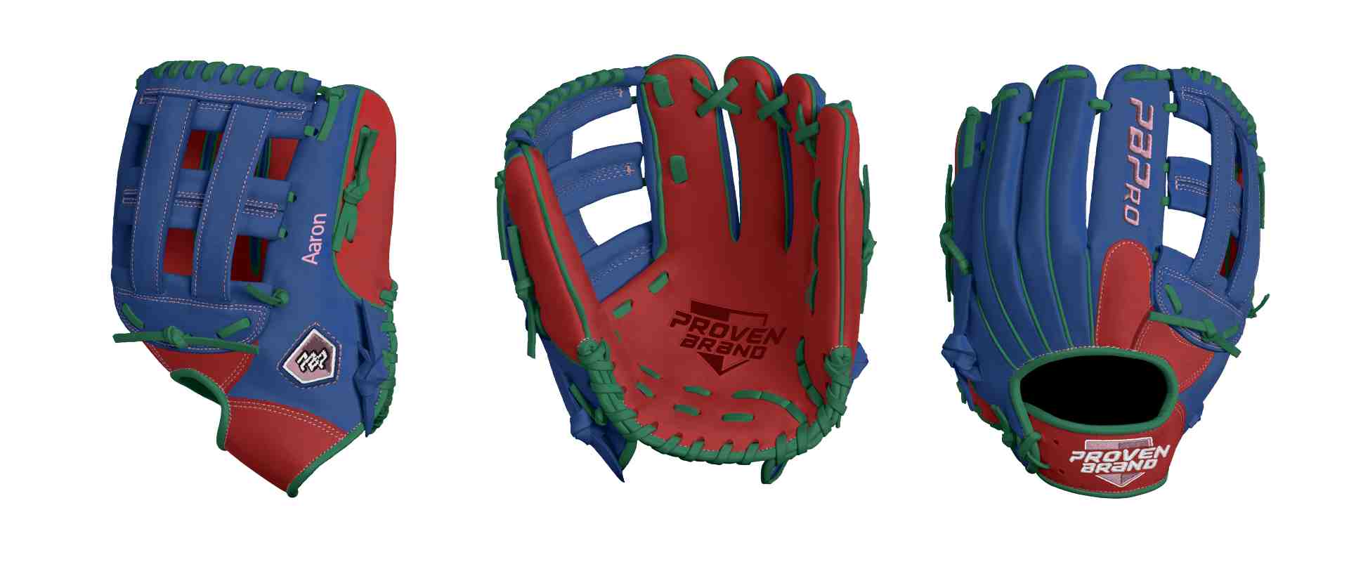 Category: PBPro Custom Product: Baseball Series: Phantom Series | USD 169.00 Glove Type: Fielders Size: 12" Finger Pad: With Finger Pad Web: Pro H Web Palm: Palm (Color: Red) Back Shell Main: Back Shell Main (Color: Royal) Back Shell Accent: Back Shell Accent (Color: Red) Web: Web (Color: Royal) Finger Pad: Finger Pad (Color: Red) Welting: Welting (Color: Green) Binding: Binding (Color: Green) Lace: Lace (Color: Green) Logo and Label-flat: Logo and Label-flat (Color: Carnation Pink) Stitch: Stitch (Color: Carnation Pink) Embroidery: Embroidery (Color: Carnation Pink) Hand Throw: Right Hand Thrower Lace Length: Normal Flex (will not show in customizer): Pro Flex: (Ideal for Pro Player who wants to have more control in forming the glove) Wrist Opening (will not show in customizer): Custom Wrist : (Player can put their wrist circumference in the remarks section and we'll adjust the fit on the wrist) Name: Aaron (Font Style: Pontano Sans, Font Color: Carnation Pink, Patch Color: N/A) Flag (Ring Finger): United States Remarks: N/A
