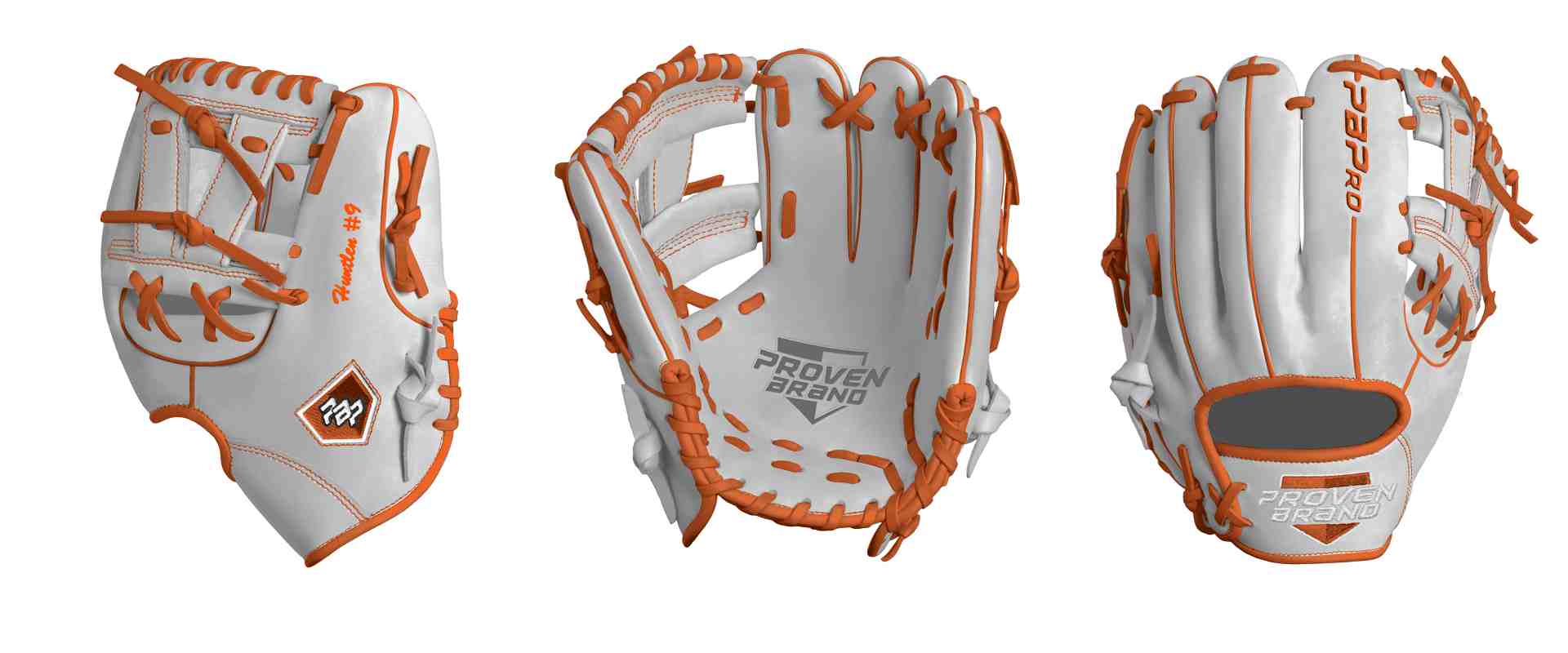 Category: PBPro Custom Product: Baseball Series: Phantom Series | USD 169.00 Glove Type: Fielders Size: 11" Finger Pad: Without Finger Pad Web: Pro V Web Palm: Palm (Color: White) Back Shell Main: Back Shell Main (Color: White) Back Shell Accent: Back Shell Accent (Color: White) Web: Web (Color: White) Welting: Welting (Color: Orange) Binding: Binding (Color: Orange) Lace: Lace (Color: Orange) Logo and Label-flat: Logo and Label-flat (Color: Orange) Stitch: Stitch (Color: Orange) Embroidery: Embroidery (Color: Orange) Hand Throw: Left Hand Thrower Lace Length: Normal Flex (will not show in customizer): Standard Flex: ( Ideal for Youth Player. Glove still needs to break in) Wrist Opening (will not show in customizer): Standard Wrist Name: Huntlen #9 (Font Style: Brush Script MT, Font Color: Orange, Patch Color: N/A) Flag (Ring Finger): N/A Remarks: Please do the name in the same color orange as the orange that is on the lace and stitching
