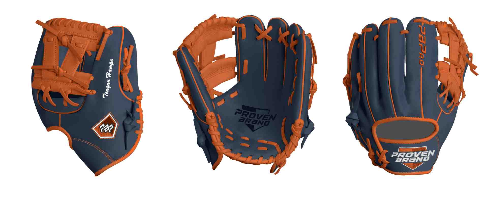 Category: PBPro Custom Product: Baseball Series: Phantom Series | USD 169.00 Glove Type: Fielders Size: 11" Finger Pad: Without Finger Pad Web: Pro V Web Palm: Palm (Color: Navy) Back Shell Main: Back Shell Main (Color: Navy) Back Shell Accent: Back Shell Accent (Color: Navy) Web: Web (Color: Orange) Welting: Welting (Color: Orange) Binding: Binding (Color: Orange) Lace: Lace (Color: Orange) Logo and Label-flat: Logo and Label-flat (Color: Orange) Stitch: Stitch (Color: Orange) Embroidery: Embroidery (Color: Orange) Hand Throw: Right Hand Thrower Lace Length: Normal Flex (will not show in customizer): Standard Flex: ( Ideal for Youth Player. Glove still needs to break in) Wrist Opening (will not show in customizer): Custom Wrist : (Player can put their wrist circumference in the remarks section and we'll adjust the fit on the wrist) Name: Teagan Hampe (Font Style: Brush Script MT, Font Color: White, Patch Color: N/A) Flag (Ring Finger): N/A Remarks: N/A