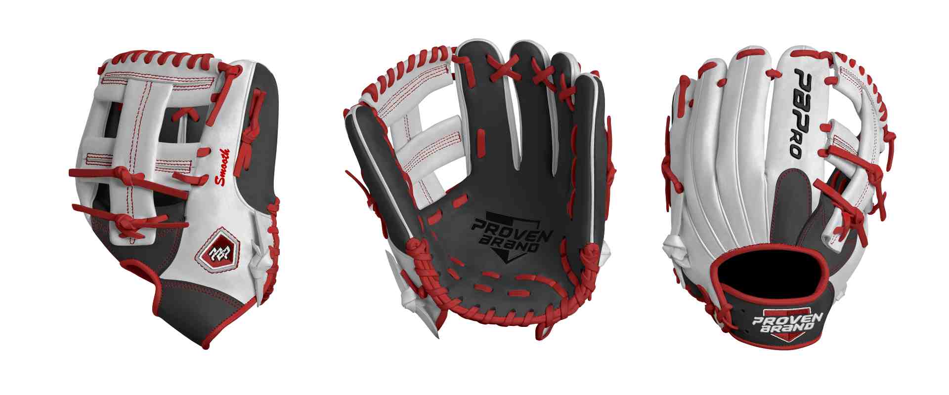 Category: PBPro Custom Product: Baseball Series: Phantom Series | USD 169.00 Glove Type: Fielders Size: 11.25" Finger Pad: With Finger Pad Web: New Cross Web Palm: Palm (Color: Black) Back Shell Main: Back Shell Main (Color: White) Back Shell Accent: Back Shell Accent (Color: Black) Web: Web (Color: White) Finger Pad: Finger Pad (Color: Black) Welting: Welting (Color: White) Binding: Binding (Color: Red) Lace: Lace (Color: Red) Logo and Label-flat: Logo and Label-flat (Color: Red) Stitch: Stitch (Color: Red) Embroidery: Embroidery (Color: Black) Hand Throw: Right Hand Thrower Lace Length: Long (will not show in customizer) Flex (will not show in customizer): Pro Flex: (Ideal for Pro Player who wants to have more control in forming the glove) Wrist Opening (will not show in customizer): Standard Wrist Name: Smooth (Font Style: Brush Script MT, Font Color: Red, Patch Color: N/A) Flag (Ring Finger): California Remarks: N/A