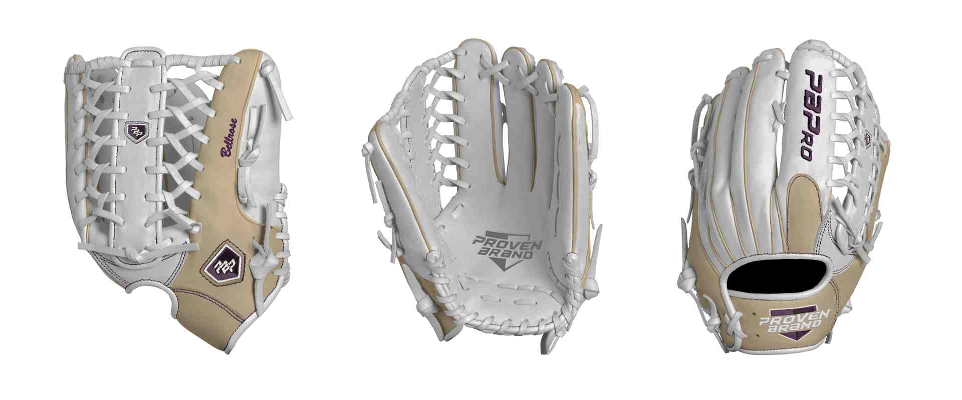 Category: PBPro Custom Product: Baseball Series: Phantom Series | USD 169.00 Glove Type: Fielders Size: 12.75" Finger Pad: With Finger Pad Web: Trapeze Web Palm: Palm (Color: White) Back Shell Main: Back Shell Main (Color: White) Back Shell Accent: Back Shell Accent (Color: Cream) Web: Web (Color: White) Finger Pad: Finger Pad (Color: Cream) Welting: Welting (Color: Cream) Binding: Binding (Color: White) Lace: Lace (Color: White) Logo and Label-flat: Logo and Label-flat (Color: Purple) Stitch: Stitch (Color: Purple) Embroidery: Embroidery (Color: Purple) Hand Throw: Right Hand Thrower Lace Length: Long (will not show in customizer) Flex (will not show in customizer): Pro Flex: (Ideal for Pro Player who wants to have more control in forming the glove) Wrist Opening (will not show in customizer): Standard Wrist Name: Bellrose (Font Style: Brush Script MT, Font Color: Purple, Patch Color: N/A) Flag (Ring Finger): United States Remarks: N/A