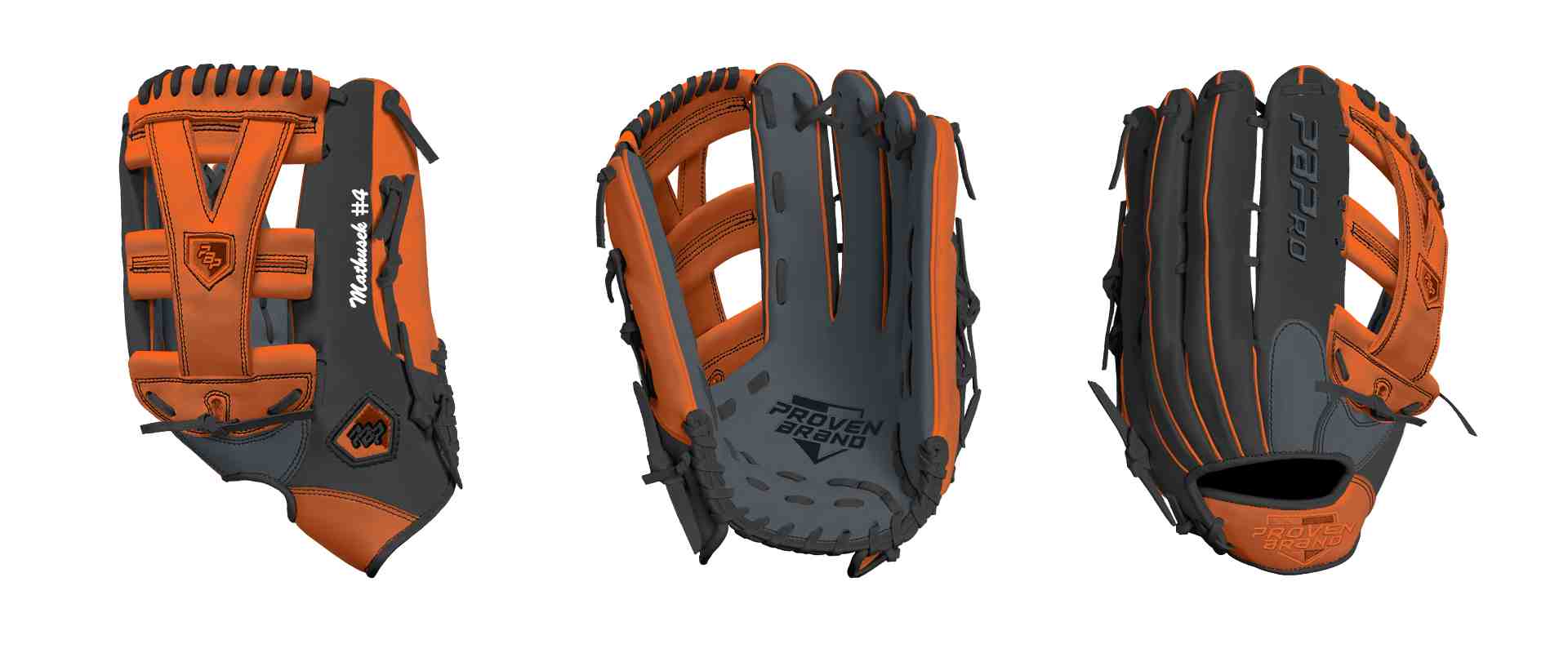 Category: PBPro Custom Product: Baseball Series: Phantom Series | USD 169.00 Glove Type: Fielders Size: 13" Finger Pad: With Finger Pad Web: Y Web Palm: Palm (Color: Steel Gray) Back Shell Main: Back Shell Main (Color: Black) Back Shell Accent: Back Shell Accent (Color: Orange) Web: Web (Color: Orange) Finger Pad: Finger Pad (Color: Steel Gray) Welting: Welting (Color: Orange) Binding: Binding (Color: Black) Lace: Lace (Color: Black) Logo and Label-flat: Logo and Label-flat (Color: Orange) Stitch: Stitch (Color: Black) Embroidery: Embroidery (Color: Steel Gray) Hand Throw: Right Hand Thrower Lace Length: Normal Flex (will not show in customizer): Pro Flex: (Ideal for Pro Player who wants to have more control in forming the glove) Wrist Opening (will not show in customizer): Standard Wrist Name: Mathusek #4 (Font Style: Brush Script MT, Font Color: White, Patch Color: N/A) Flag (Ring Finger): United States Remarks: N/A