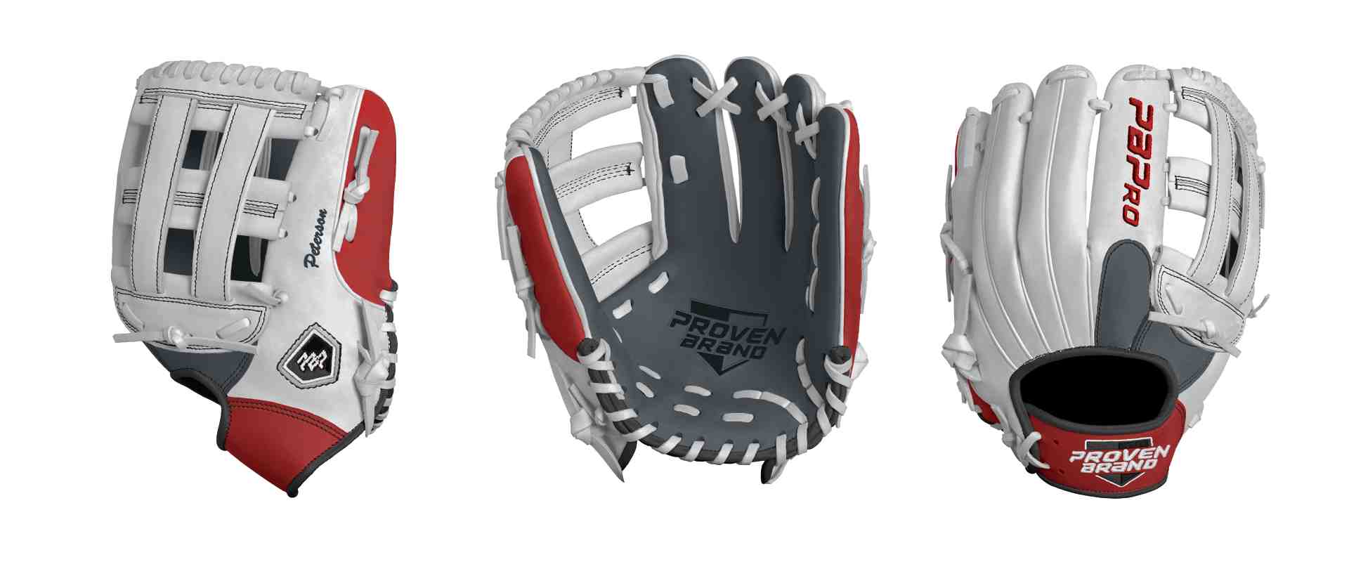 Category: PBPro Custom Product: Baseball Series: Phantom Series | USD 169.00 Glove Type: Fielders Size: 12.25" Finger Pad: With Finger Pad Web: Pro H Web Palm: Palm (Color: Steel Gray) Back Shell Main: Back Shell Main (Color: White) Back Shell Accent: Back Shell Accent (Color: Red) Web: Web (Color: White) Finger Pad: Finger Pad (Color: Steel Gray) Welting: Welting (Color: White) Binding: Binding (Color: Black) Lace: Lace (Color: White) Logo and Label-flat: Logo and Label-flat (Color: Black) Stitch: Stitch (Color: Black) Embroidery: Embroidery (Color: Red) Hand Throw: Right Hand Thrower Lace Length: Normal Flex (will not show in customizer): Standard Flex: ( Ideal for Youth Player. Glove still needs to break in) Wrist Opening (will not show in customizer): Standard Wrist Name: Peterson (Font Style: Brush Script MT, Font Color: Steel Gray, Patch Color: N/A) Flag (Ring Finger): United States Remarks: N/A