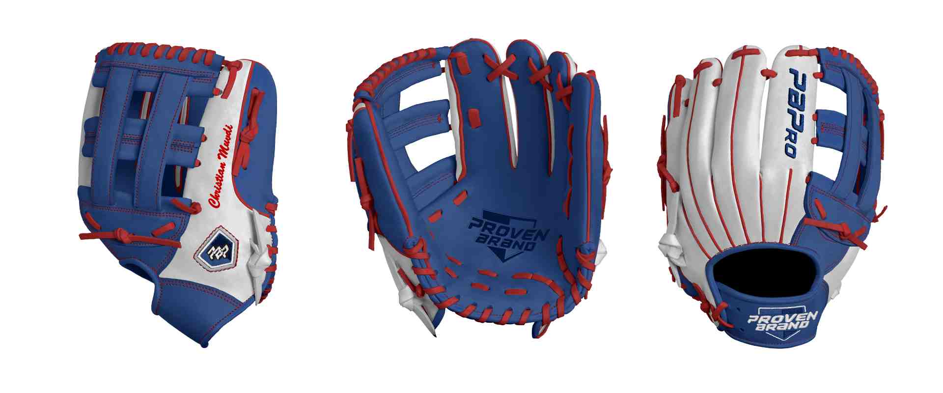 Category: PBPro Custom Product: Baseball Series: Phantom Series | USD 169.00 Glove Type: Fielders Size: 11.75" Finger Pad: Without Finger Pad Web: Pro H Web Palm: Palm (Color: Royal) Back Shell Main: Back Shell Main (Color: White) Back Shell Accent: Back Shell Accent (Color: Royal) Web: Web (Color: Royal) Welting: Welting (Color: Red) Binding: Binding (Color: Royal) Lace: Lace (Color: Red) Logo and Label-flat: Logo and Label-flat (Color: Royal) Stitch: Stitch (Color: Red) Embroidery: Embroidery (Color: Royal) Hand Throw: Right Hand Thrower Lace Length: Normal Flex (will not show in customizer): Pro Flex: (Ideal for Pro Player who wants to have more control in forming the glove) Wrist Opening (will not show in customizer): Custom Wrist : (Player can put their wrist circumference in the remarks section and we'll adjust the fit on the wrist) Name: Christian Muvdi (Font Style: Brush Script MT, Font Color: Red, Patch Color: N/A) Flag (Ring Finger): Puerto Rico Remarks: N/A