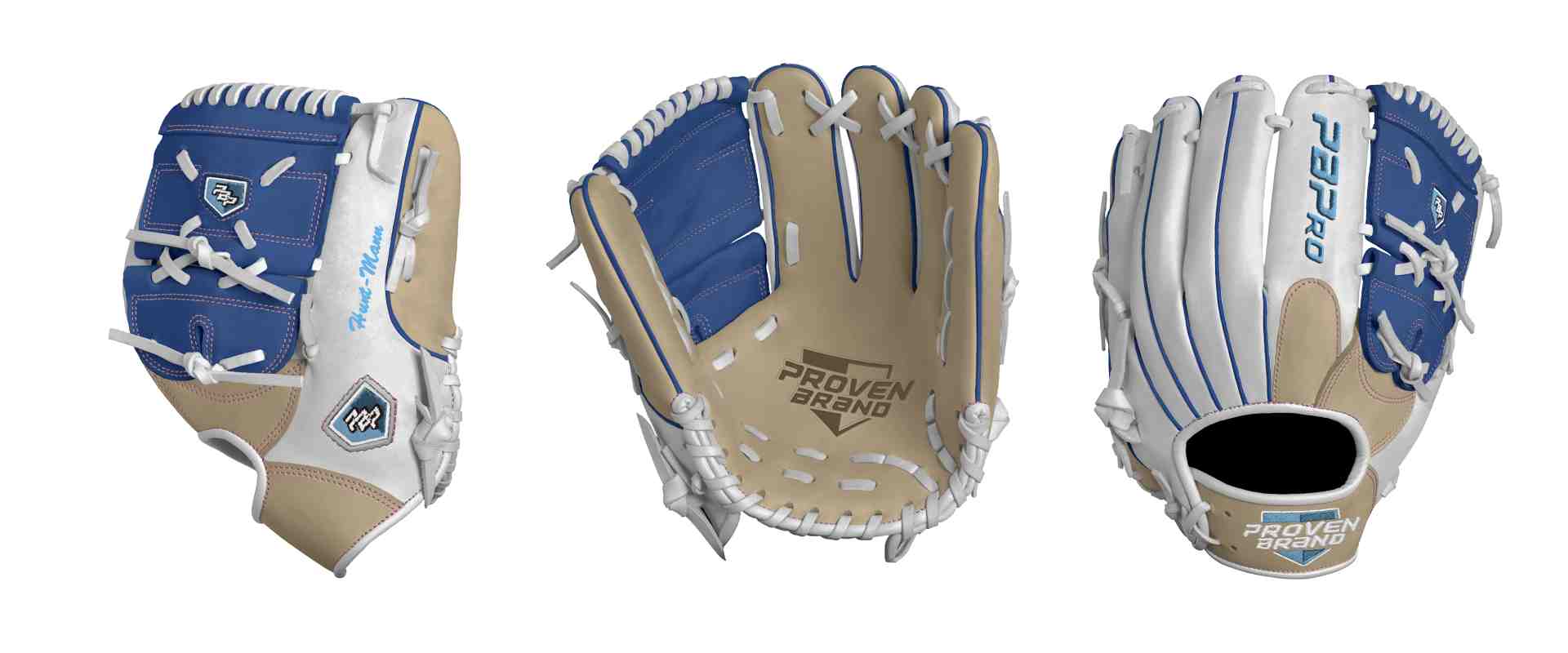 Category: PBPro Custom Product: Baseball Series: Phantom Series | USD 169.00 Glove Type: Fielders Size: 11.5 Finger Pad: With Finger Pad Web: Two Piece Web Palm: Palm (Color: Cream) Back Shell Main: Back Shell Main (Color: White) Back Shell Accent: Back Shell Accent (Color: Cream) Web: Web (Color: Royal) Finger Pad: Finger Pad (Color: Cream) Welting: Welting (Color: Royal) Binding: Binding (Color: White) Lace: Lace (Color: White) Logo and Label-flat: Logo and Label-flat (Color: Columbia Blue) Stitch: Stitch (Color: Carnation Pink) Embroidery: Embroidery (Color: Columbia Blue) Hand Throw: Right Hand Thrower Lace Length: Normal Flex (will not show in customizer): Pro Flex: (Ideal for Pro Player who wants to have more control in forming the glove) Wrist Opening (will not show in customizer): Standard Wrist Name: Hunt-Mann (Font Style: Brush Script MT, Font Color: Columbia Blue, Patch Color: N/A) Flag (Ring Finger): United States Remarks: N/A