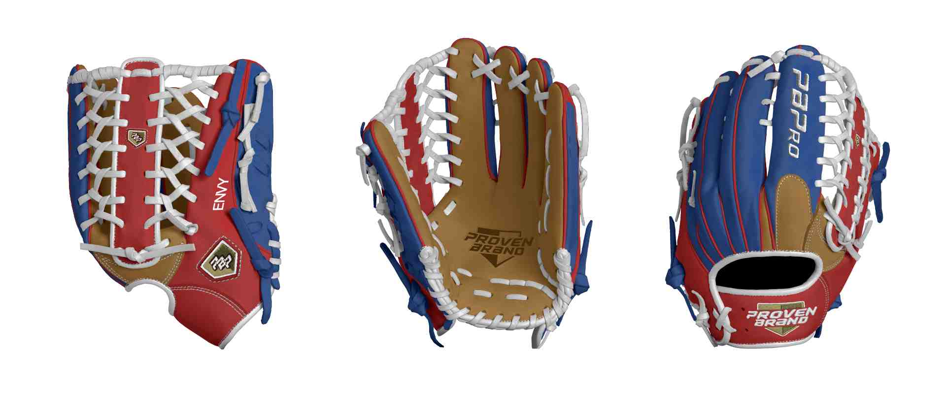 Category: PBPro Custom Product: Baseball Series: Phantom Series | USD 169.00 Glove Type: Fielders Size: 12.5" Finger Pad: With Finger Pad Web: Trapeze Web Palm: Palm (Color: Tan) Back Shell Main: Back Shell Main (Color: Royal) Back Shell Accent: Back Shell Accent (Color: Red) Web: Web (Color: Red) Finger Pad: Finger Pad (Color: Tan) Welting: Welting (Color: Red) Binding: Binding (Color: White) Lace: Lace (Color: White) Logo and Label-flat: Logo and Label-flat (Color: Vegas Gold) Stitch: Stitch (Color: White) Embroidery: Embroidery (Color: White) Hand Throw: Right Hand Thrower Lace Length: Normal Flex (will not show in customizer): Pro Flex: (Ideal for Pro Player who wants to have more control in forming the glove) Wrist Opening (will not show in customizer): Standard Wrist Name: ENVY (Font Style: Pontano Sans, Font Color: White, Patch Color: N/A) Flag (Ring Finger): Puerto Rico Remarks: N/A