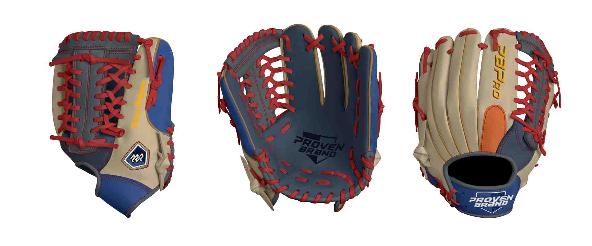 Category: PBPro Custom Product: Baseball Series: Phantom Series | USD 169.00 Glove Type: Fielders Size: 12" Finger Pad: With Finger Pad Web: Modified Trap Web Palm: Palm (Color: Navy) Back Shell Main: Back Shell Main (Color: Cream) Back Shell Accent: Back Shell Accent (Color: Royal) Web: Web (Color: Steel Gray) Finger Pad: Finger Pad (Color: Orange) Welting: Welting (Color: Tan) Binding: Binding (Color: Steel Gray) Lace: Lace (Color: Red) Logo and Label-flat: Logo and Label-flat (Color: Royal) Stitch: Stitch (Color: Red) Embroidery: Embroidery (Color: Golden Yellow) Hand Throw: Left Hand Thrower Lace Length: Normal Flex (will not show in customizer): Standard Flex: ( Ideal for Youth Player. Glove still needs to break in) Wrist Opening (will not show in customizer): Standard Wrist Name: Dylan Bekgran (Font Style: Brush Script MT, Font Color: Golden Yellow, Patch Color: N/A) Flag (Ring Finger): United States Remarks: N/A