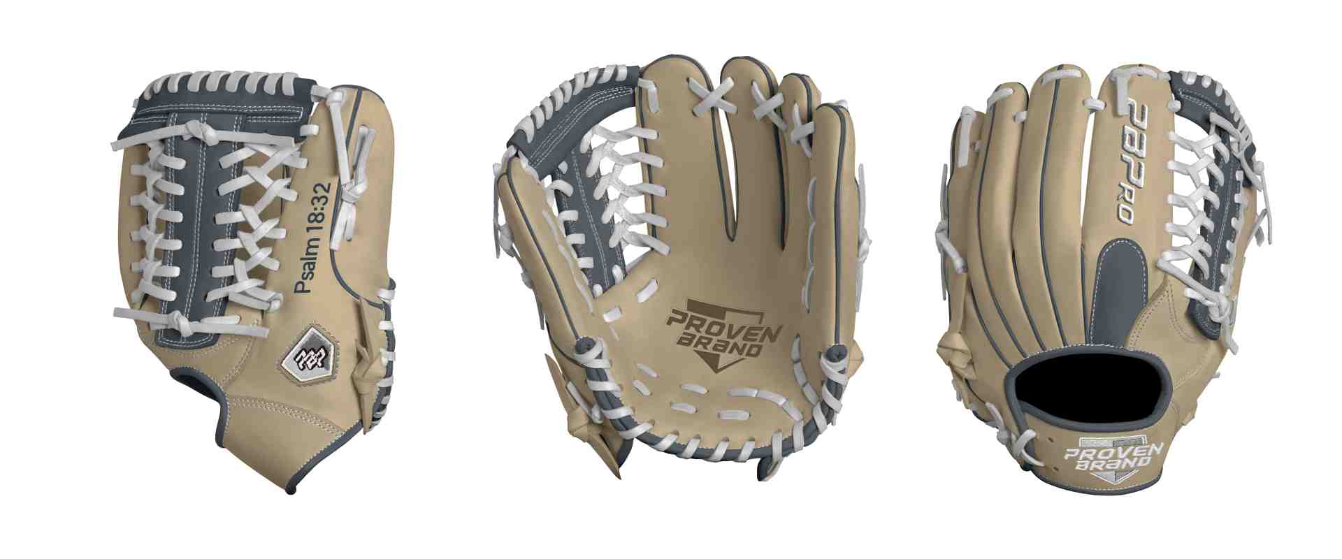 Category: PBPro Custom Product: Baseball Series: Phantom Series | USD 169.00 Glove Type: Fielders Size: 12.25" Finger Pad: With Finger Pad Web: Modified Trap Web Palm: Palm (Color: Cream) Back Shell Main: Back Shell Main (Color: Cream) Back Shell Accent: Back Shell Accent (Color: Cream) Web: Web (Color: Steel Gray) Finger Pad: Finger Pad (Color: Steel Gray) Welting: Welting (Color: Steel Gray) Binding: Binding (Color: Steel Gray) Lace: Lace (Color: White) Logo and Label-flat: Logo and Label-flat (Color: White) Stitch: Stitch (Color: White) Embroidery: Embroidery (Color: White) Hand Throw: Right Hand Thrower Lace Length: Normal Flex (will not show in customizer): Pro Flex: (Ideal for Pro Player who wants to have more control in forming the glove) Wrist Opening (will not show in customizer): Standard Wrist Name: Psalm 18:32 (Font Style: Pontano Sans, Font Color: Steel Gray, Patch Color: N/A) Flag (Ring Finger): N/A Remarks: N/A