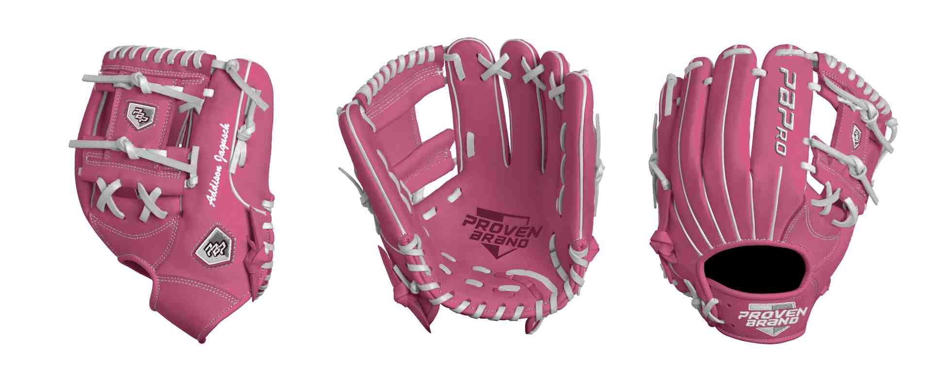 Category: PBPro Custom Product: Baseball Series: Phantom Series | USD 169.00 Glove Type: Fielders Size: 11.5 Finger Pad: Without Finger Pad Web: Pro I Web Palm: Palm (Color: Shocking Pink) Back Shell Main: Back Shell Main (Color: Shocking Pink) Back Shell Accent: Back Shell Accent (Color: Shocking Pink) Web: Web (Color: Shocking Pink) Welting: Welting (Color: White) Binding: Binding (Color: Shocking Pink) Lace: Lace (Color: White) Logo and Label-flat: Logo and Label-flat (Color: White) Stitch: Stitch (Color: White) Embroidery: Embroidery (Color: White) Hand Throw: Right Hand Thrower Lace Length: Long (will not show in customizer) Flex (will not show in customizer): Pro Flex: (Ideal for Pro Player who wants to have more control in forming the glove) Wrist Opening (will not show in customizer): Standard Wrist Name: Addison Jagusch (Font Style: Brush Script MT, Font Color: White, Patch Color: N/A) Flag (Ring Finger): N/A Remarks: N/A
